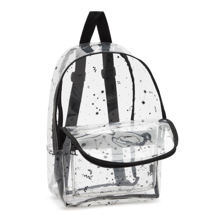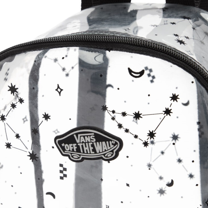 Boasting a clear body with an allover checkerboard celestial print, the Bounds TPU Backpack is a small backpack with major style. Adjustable straps and multiple compartments ensure that this trend-setting backpack will be your next wardrobe staple. - MATERIAL - 100% polyurethane - DIMENSIONS - 13 H x 8 W x 4 D inches