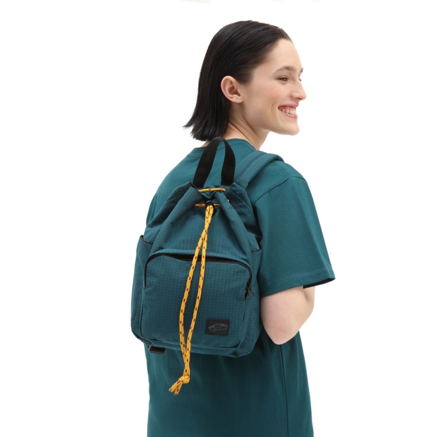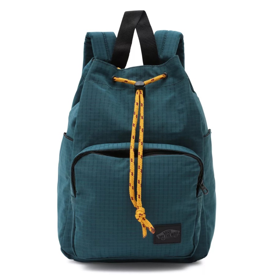 A drawstring bucket backpack made with novelty fabric, the Going Places Backpack features a contrasting cord closure and a silicone logo patch for an elevated look. Along with a front zip pocket, the padded shoulder straps and water bottle pocket make your life easy on the go.