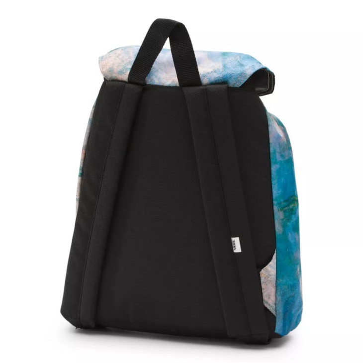 Vans and The Museum of Modern Art collaborate on a footwear and apparel collection highlighting works by celebrated artists from MoMA collection. MoMA and Vans share a passion for encouraging creative expression and individuality around the world. The Vans MoMA Monet Backpack is a polyester satin backpack with a collaboration logo patch and an allover print featuring a detail of Claude Monet Water Lilies painting. It also includes one main compartment with a buckle closure, an exterior zip pocket, and padded shoulder straps.
