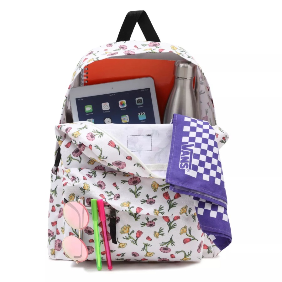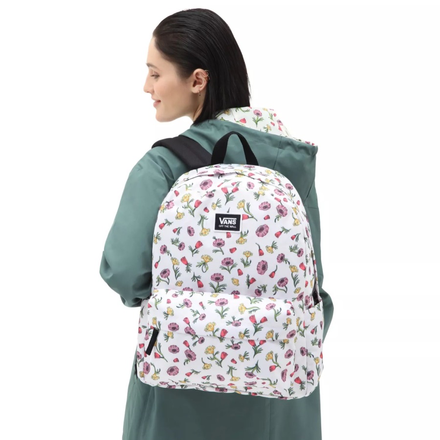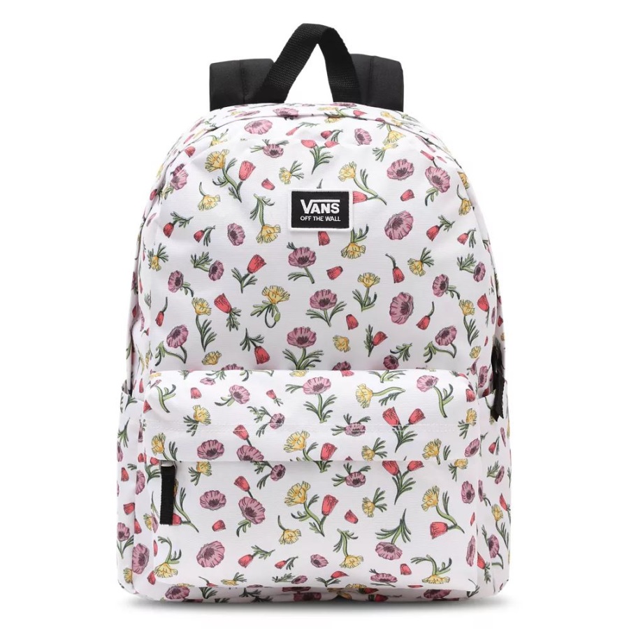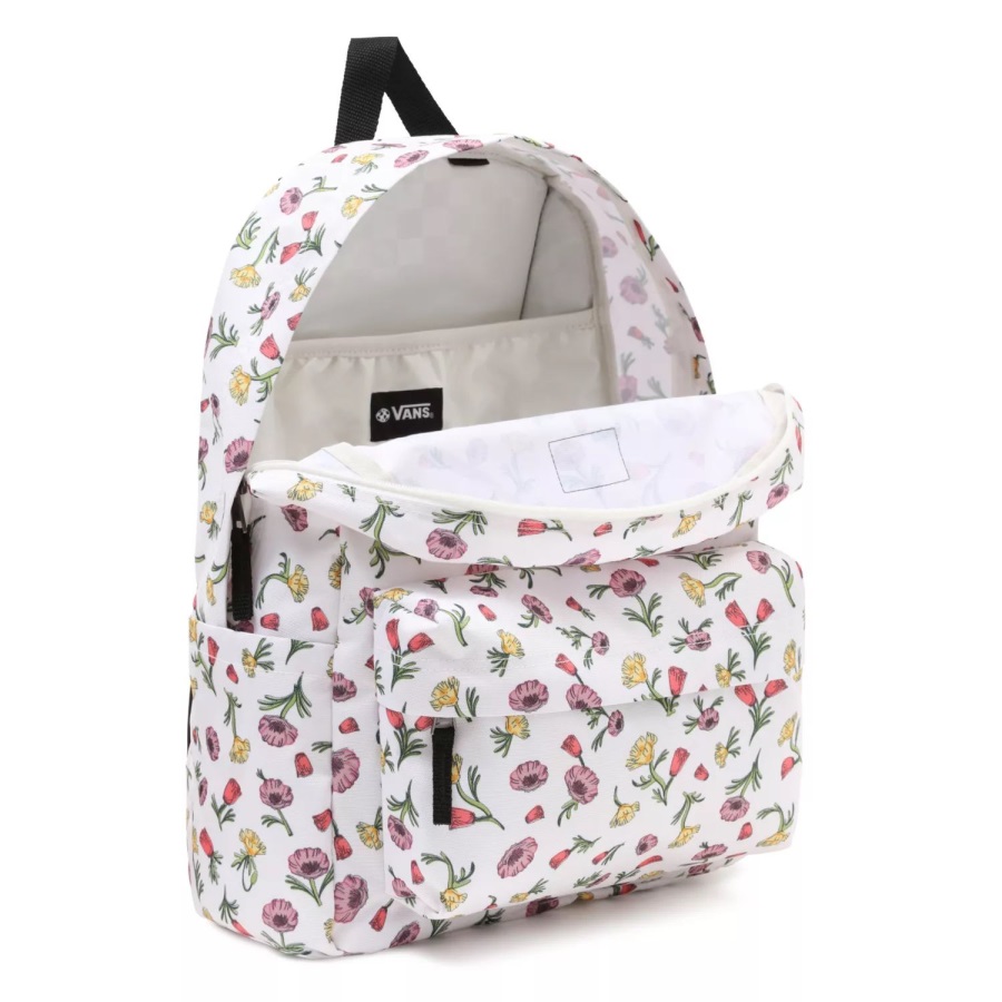 The Old Skool H2O Backpack is a favorite for good reason. This classic backpack features an all-purpose, two pocket design with an organizer in the front to ensure that your important items stay neatly arranged, an interior laptop sleeve so you can safely take your gear on the go, and a side water bottle pocket for easy hydration. Heritage details like the woven logo label and retro floral print bring an Off The Wall touch to this iconic design. Does not come with water bottle or laptop.