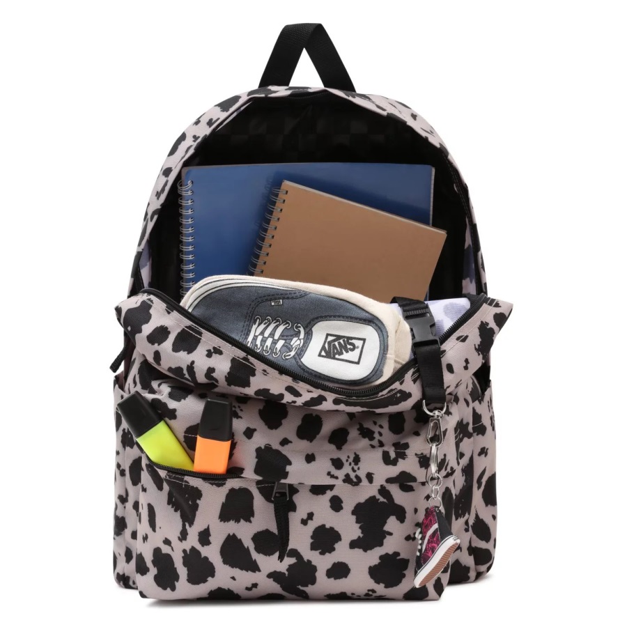 The Old Skool H2O Backpack is a favorite for good reason. This classic backpack features an all-purpose, two pocket design with an organizer in the front to ensure that your important items stay neatly arranged, an interior laptop sleeve so you can safely take your gear on the go, and a side water bottle pocket for easy hydration. Heritage details like the woven logo label and allover print bring an Off The Wall touch to this iconic design.Does not come with water bottle or laptop.