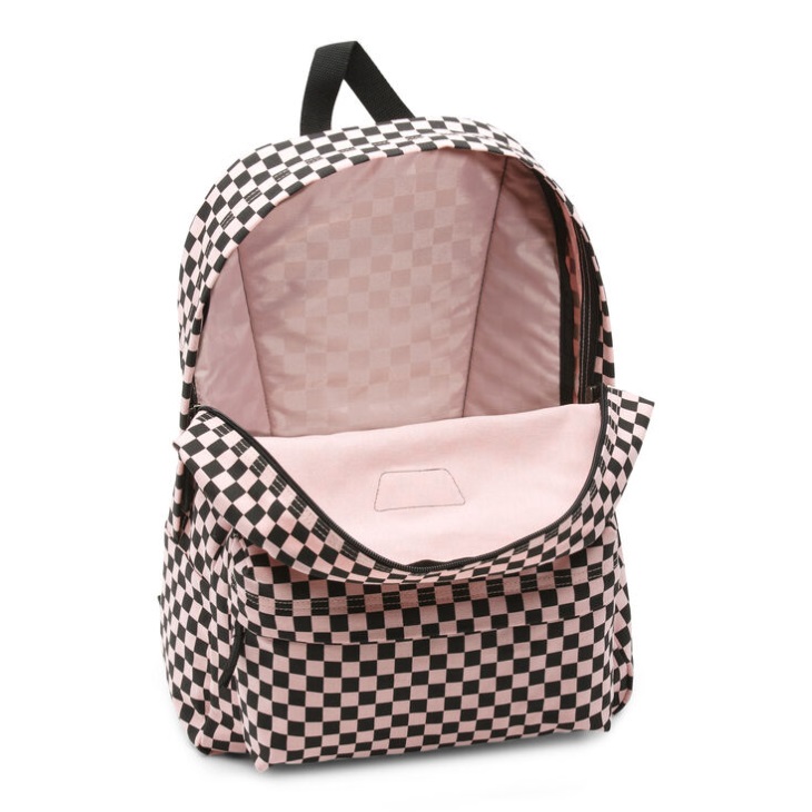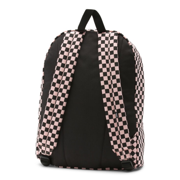 A classic backpack thats ready for anything, the Realm Canvas Backpack features a zippered main compartment with an interior laptop sleeve, a front pocket with an organizer to keep your important items neatly arranged, and adjustable padded shoulder straps. Heritage details, like the allover checkerboard print and Vans label, bring an Off The Wall touch to this iconic design.