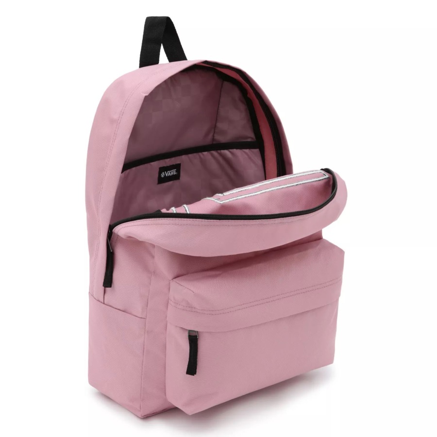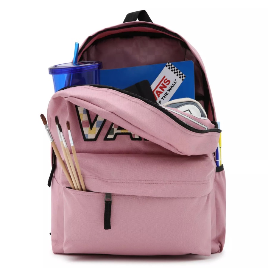 A classic backpack that's ready for anything, the Realm Flying V Backpack features a zippered main compartment with an interior laptop sleeve, a front pocket with an organizer to keep your important items neatly arranged, and adjustable padded shoulder straps. Heritage details, like the floral Vans logo, bring an "Off The Wall" touch to this iconic design. Does not come with laptop.