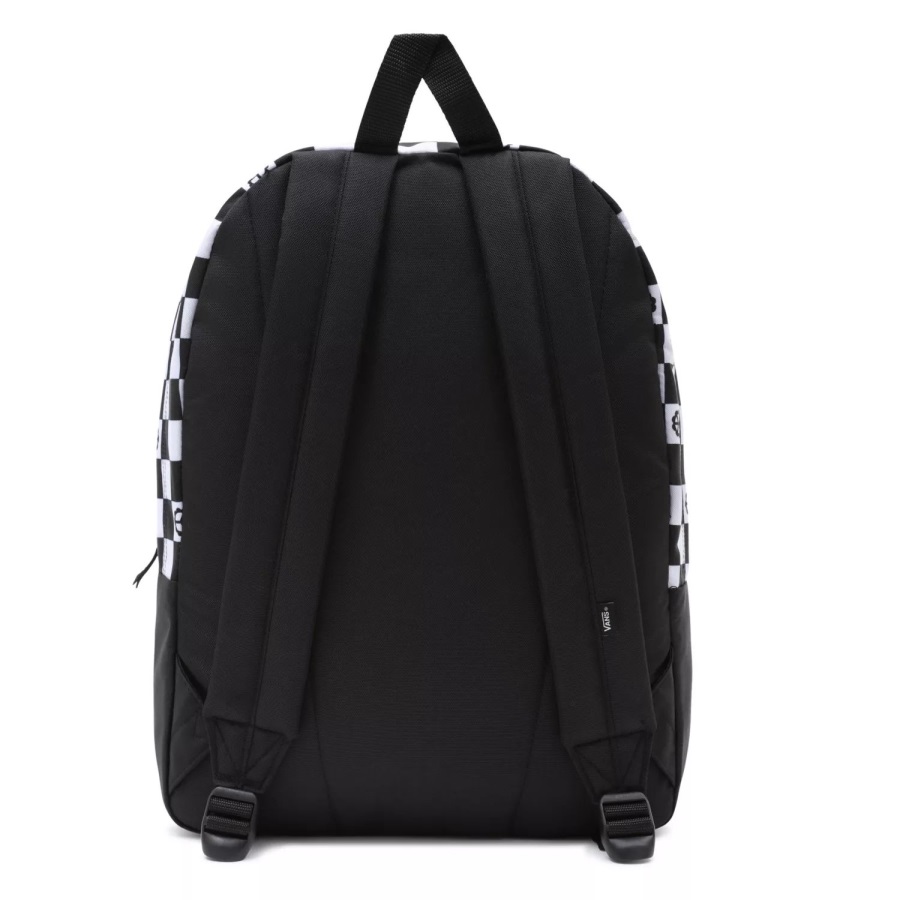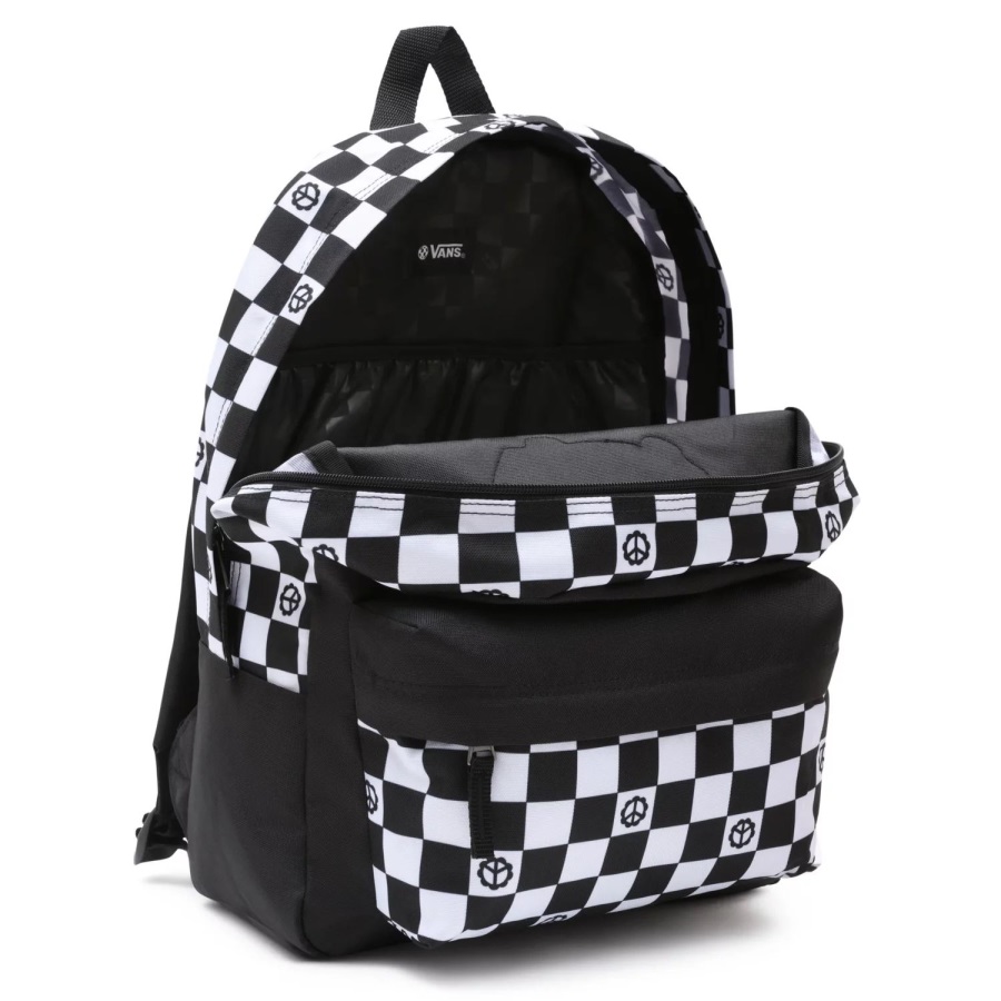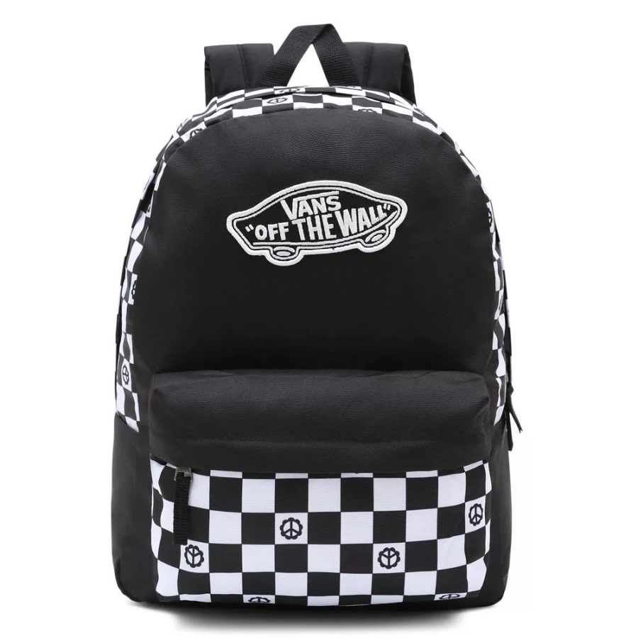 The Vans Realm Backpack is a two pocket backpack with debossed lining at the interior back panel. It has a zippered main compartment, a front organisation pocket for storing items neatly and an interior laptop sleeve. It measures 42,5 H x 32,4 W x 12,4 D cm and has a 22 litre capacity. It has the Vans Off The Wall branding on the front.