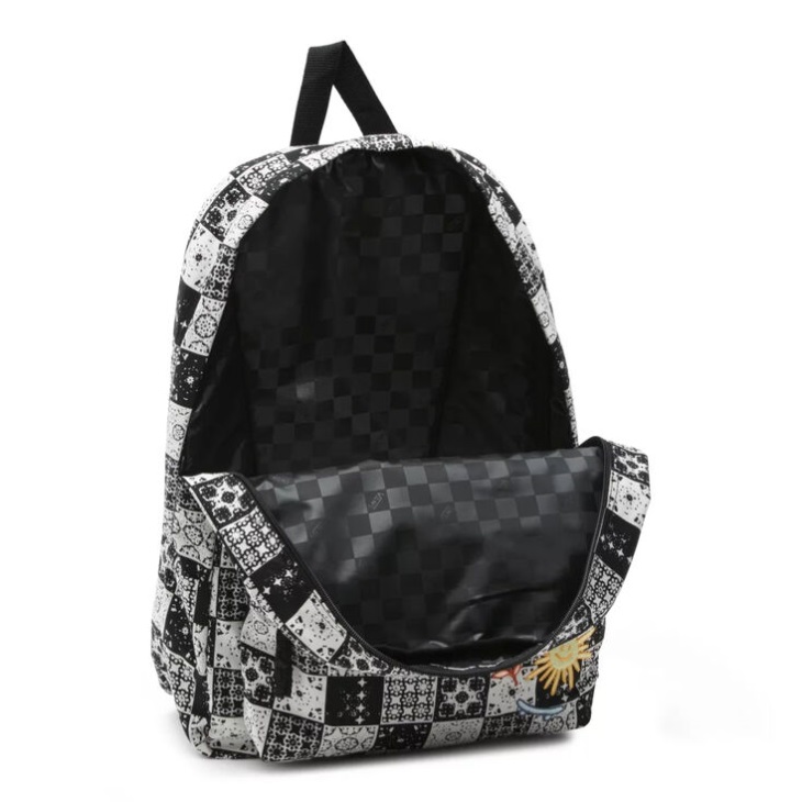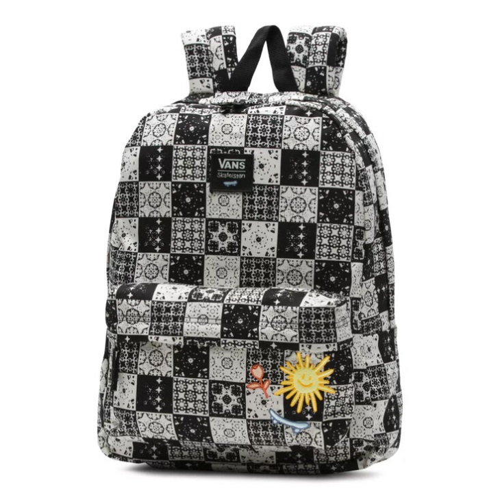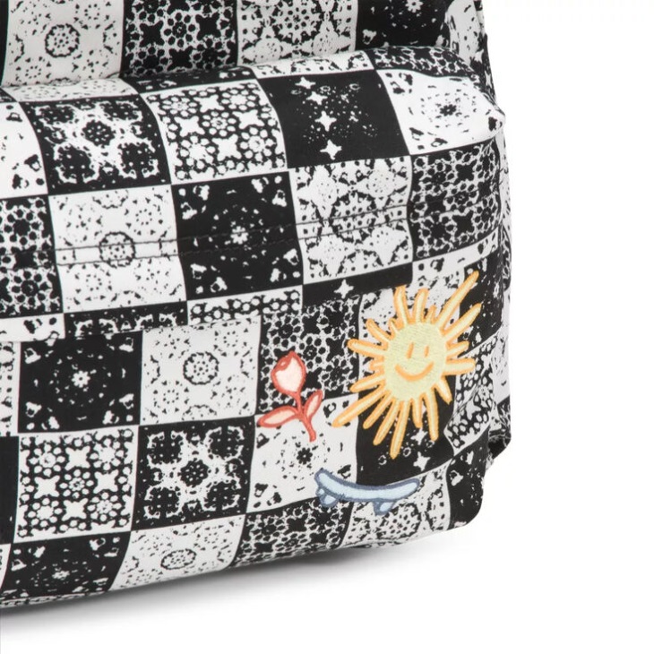 Starting with just three skateboards on the streets of Kabul in 2007, Skateistan has evolved into an award-winning, international non-governmental organization with the mission of empowering children and youth through skateboarding and education. Partnering with Vans for a unique and uplifting collection, the Vans x Skateistan Backpack elevates our iconic checkerboard pattern with an allover print inspired by Skateistans roots. Along with custom sun embroidery and a silicone logo patch, this classic backpack includes an organizer to ensure that all your essentials stay neat and easily accessible, and straight-cut padded shoulder straps for a customizable fit. Together, Vans, Skateistan, and YOU can make the world a better place through the power of skateboarding. - PADDED LAPTOP SLEEVE - Keep your laptop safe in a padded internal laptop sleeve. Fits most 15-inch laptops. - ORGANIZATION - Arrange your cords, pens, and other important items neatly in an organizer for quick access. - PADDED SHOULDER STRAPS - Classic padded shoulder straps pair comfort with an old school aesthetic. - MATERIAL - 98% cotton, 2% elastane printed cotton twill - DIMENSIONS - 16.75 H x 12.75 W x 4.75 D inches - CAPACITY- 22 liters