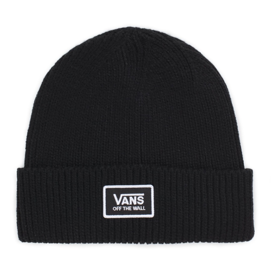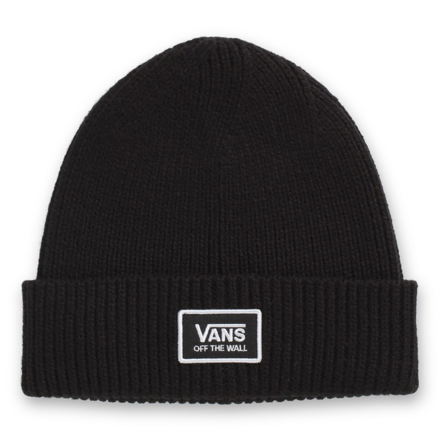 The Falcon Beanie is a 95% acrylic, 4% nylon, and 1% elastane rib knit beanie with a Vans logo patch.