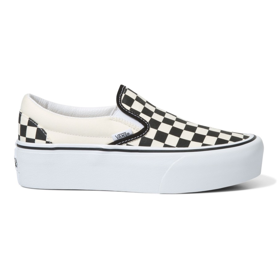 The Classic Slip-On Stackform refreshes our original slip-on silhouette with an even chunkier take on the platform aesthetic. Constructed with a 34 mm sidewall height, this platform shoe elevates a classic favorite while bringing a new "Off The Wall" style to your look. Along with sturdy canvas uppers featuring a checkerboard print, the Classic Slip-On Stackform is finished with traditional elastic side accents, supportive padded collars, and signature rubber waffle outsoles. Vans' iconic slip-on shoe Upgraded with a 34 mm platform height Sturdy canvas uppers with a checkerboard print Elastic side accents Supportive padded collars Signature rubber waffle outsoles
