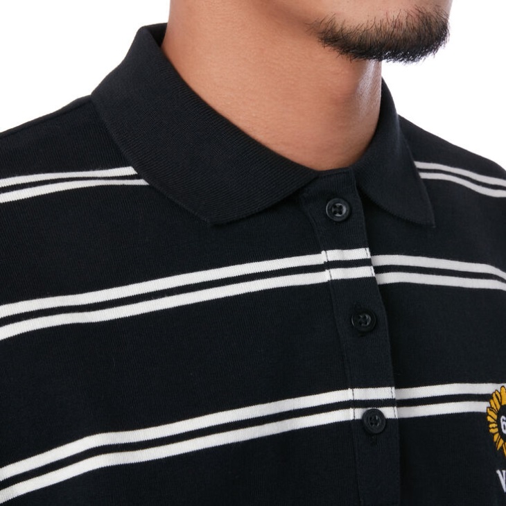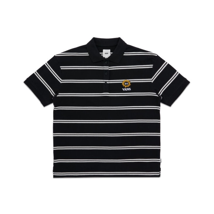 Vans 66 Sunflower Polo T-Shirt Black-Marshmallow Stripe