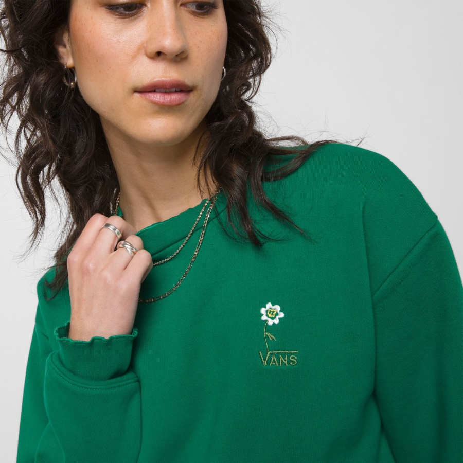 Paying tribute to our first Vans factory in Anaheim, California, the Anaheim Floral Crew dips into our archives for a throwback look with plenty of modern style. Featuring rose embroidery at the left chest, this heavyweight pullover crewneck sweatshirt stands out with its simplicity. Elevated details, like lettuce-edge ribbing at the neck, bottom hem, and sleeve cuffs, further enhance the look.
