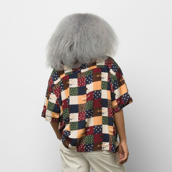 Paying tribute to our first Vans factory in Anaheim, California, the Anaheim OG Shirt dips into our archives for a mix of throwback prints with plenty of modern style. Featuring an allover patchwork design, this short sleeve buttondown top is made with 100% viscose and has a relaxed fit. Roll cuff sleeves complete the look. Model is 5 feet 9 inches tall and wearing a size Small.