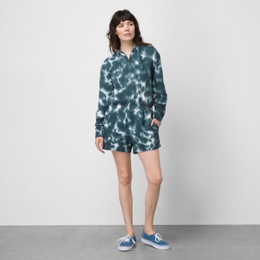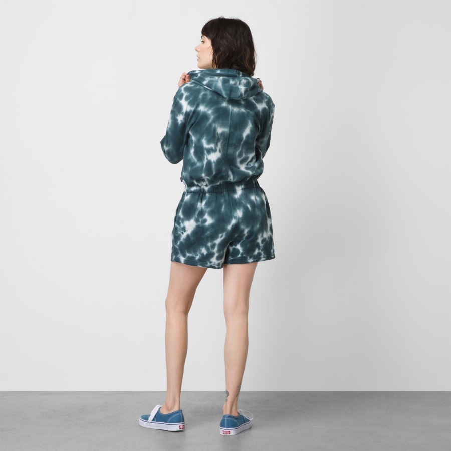 Made with a cozy cotton and polyester fleece blend, the Cloud Long Sleeve Romper features an allover cloud wash and classic left chest logo embroidery. The elastic waist provides just the right amount of structure, while the front zip makes dressing a breeze. Model is 5 feet 9 inches tall and wearing a size Small.