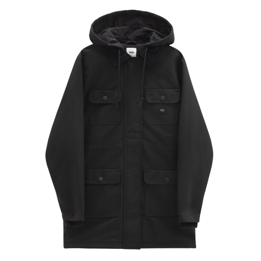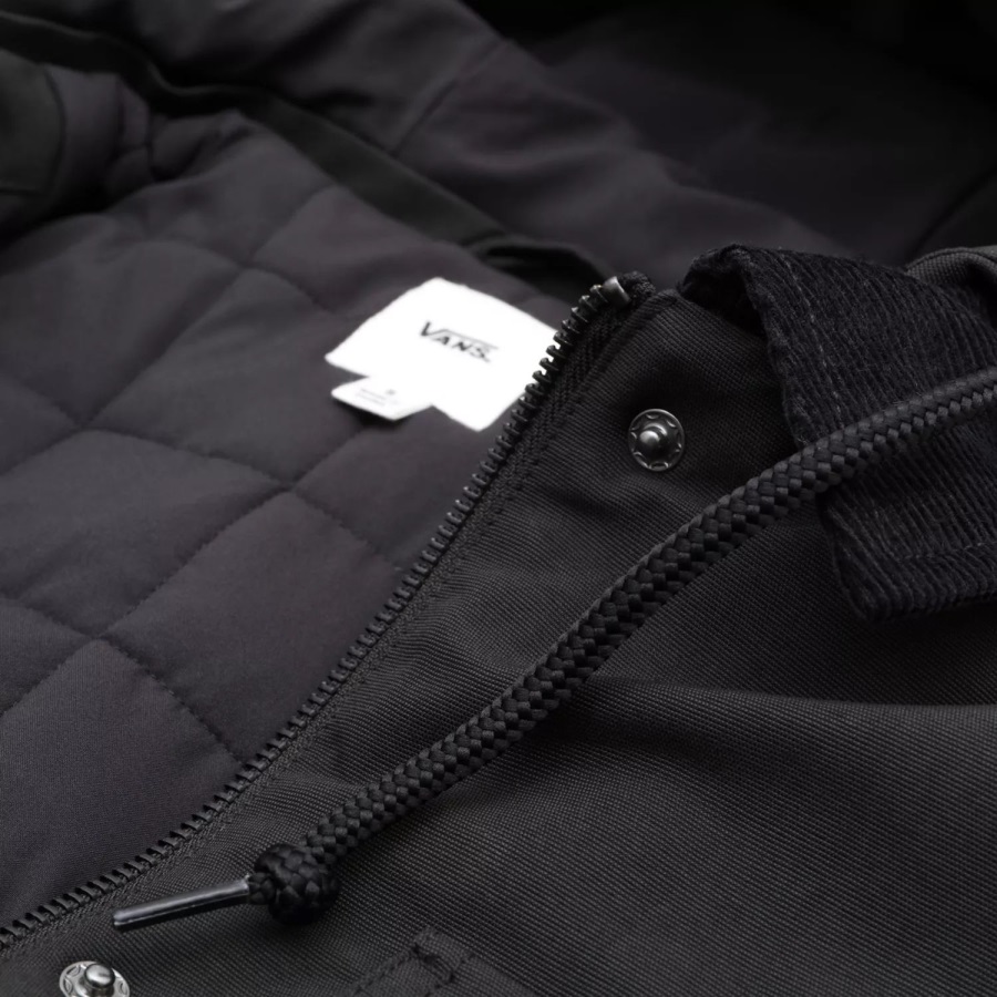 Vans MTE is the byproduct of a lifetime spent outdoors, because we know that the pursuit of your passions isn't always accompanied by a fair-weather forecast. Rain, sleet, snow, mud, wind-nothing is going to stand between you and your next adventure. In fact, we like to think these all add a bit of flavor to the experience. It's why we created MTE in the first place.Offering protection from the elements with classic Vans styling, the Drill Long II Chore Coat MTE features a longer length, Durable Water Repellent coating, and thermoregulation properties. Other standout features include box interior quilting, a classic corduroy collar, a snap-front placket with a hidden zipper, and various front pockets. Featuring a removable hood for ultimate versatility, this two-layer oxford chore coat delivers on a new promise of an all-weather enabling product.Whether you find yourself bagging snowcapped peaks or braving a rain-soaked commute, you can set off with confidence knowing every stitch of your equipment is intentionally placed to provide ultimate versatility. After all, we know it was never about the destination. It's about the stories you create along your journey.