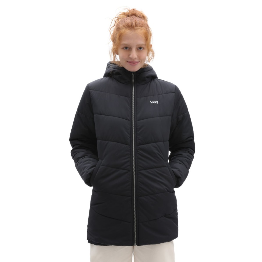 Vans MTE is the byproduct of a lifetime spent outdoors, because we know that the pursuit of your passions isn't always accompanied by a fair-weather forecast. Rain, sleet, snow, mud, wind-nothing is going to stand between you and your next adventure. In fact, we like to think these all add a bit of flavor to the experience. It's why we created MTE in the first place.Offering protection from the elements with classic Vans styling, the Foundry Long MTE Jacket features a high neck and hood, Durable Water Repellent coating, DuPont™ body fill, and logo embroidery at the chest. Made with a 100% polyester, this longer-length fashion puffer jacket delivers on a new promise of an all-weather enabling product.Whether you find yourself bagging snowcapped peaks or braving a rain-soaked commute, you can set off with confidence knowing every stitch of your equipment is intentionally placed to provide ultimate versatility. After all, we know it was never about the destination. It's about the stories you create along your journey.