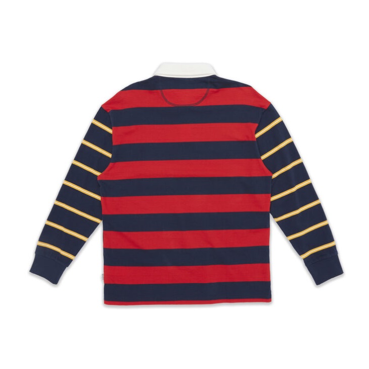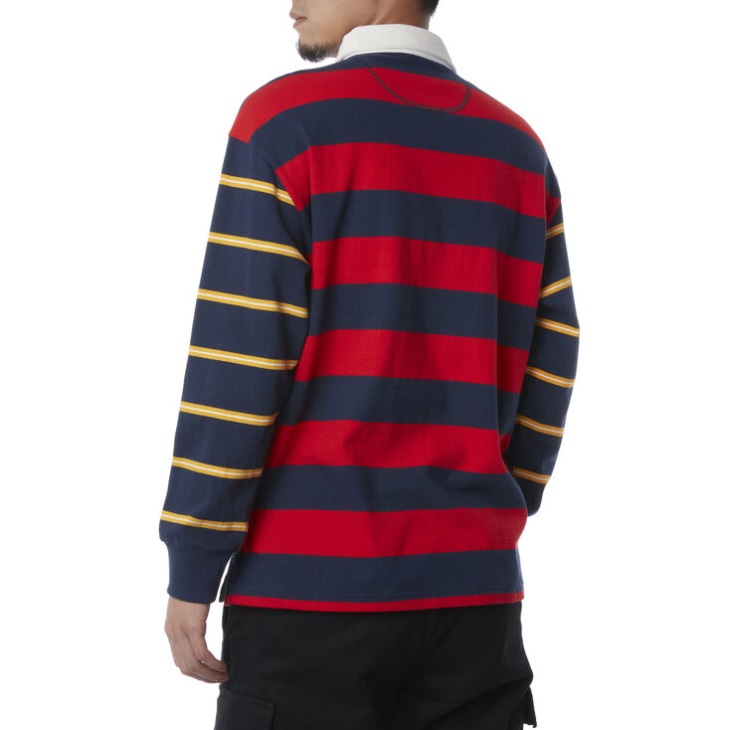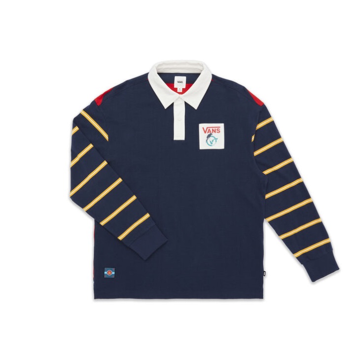 The Own Genre Long Sleeve Polo is a 100% cotton long-sleeve polo tee in funky stripes and a Vans logo.
