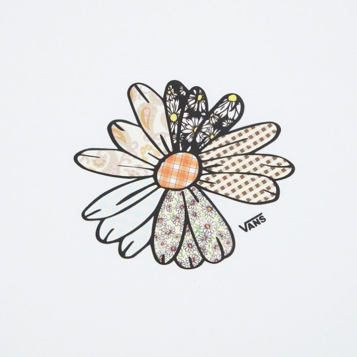 The Patchwork Daisy T-shirt is a 100% cotton round-neck tee in a minimalist design with a simple patterned daisy craft design on the front.