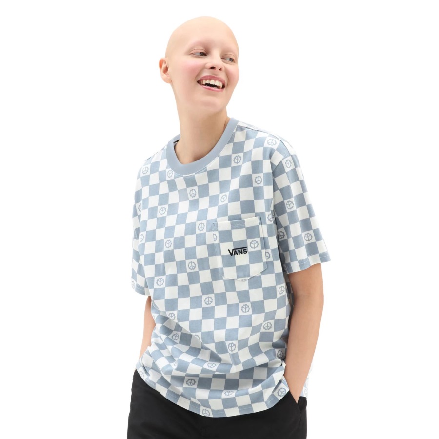 Keep the positive vibes coming with the Peace Pocket T-Shirt. Featuring an allover checkerboard print offset by scattered peace signs, this short sleeve t-shirt is made with heavyweight 100% cotton jersey and finished with a pocket and logo graphics at left chest.