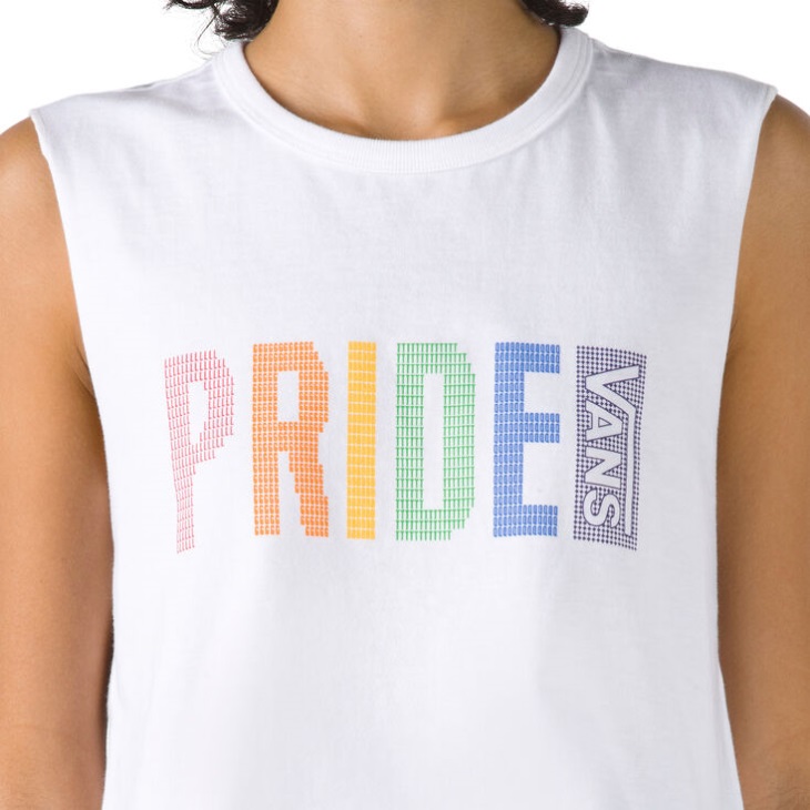 To celebrate the LGBTQ+ community and promote free expression, this collection was designed to support a more equal and inclusive society. Taking inspiration from Pride celebrations worldwide, the Pride Muscle Tank incorporates a kaleidoscope of color with bold prints and a Vans twist on an iconic rainbow checkerboard print.