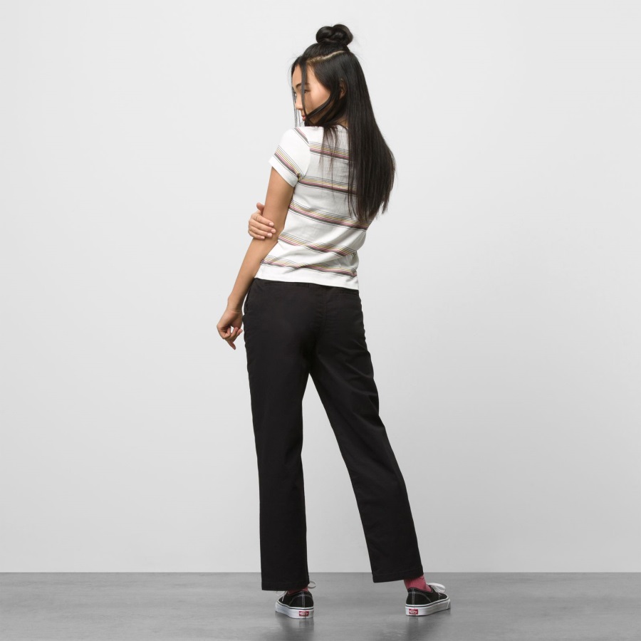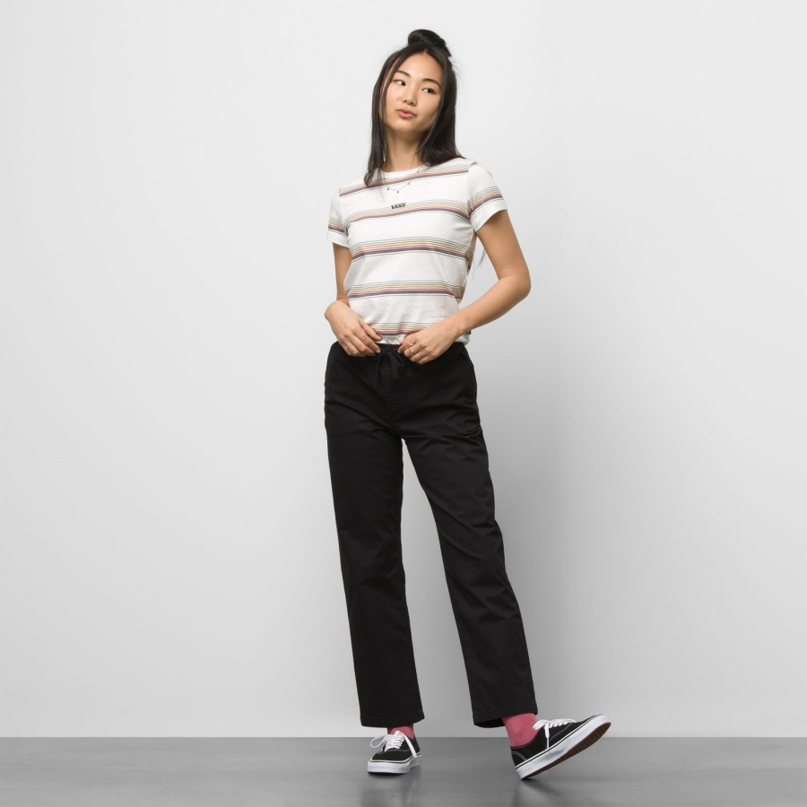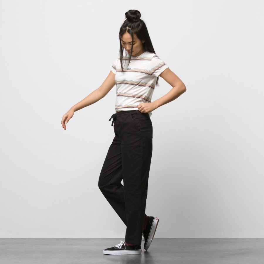 OVERVIEW with a focus on comfort that never sacrifices style, the Vans Range Pants are built around an easy pull-on elastic waist for all-day, everyday wear. Made with stretch twill, the Range Relaxed Pant uses a relaxed fit, straight legs, and a workwear-inspired back logo label for a timeless look. For even more of a Vans edge, we've also added a new flag label sewn internally to the hem seam for added branding when legs are cuffed. Model is 5 feet 9 inches tall, has a 23-inch waist, and is wearing a size Small. in order to reduce the overall footprint of Vans, our team has set ambitious sustainability goals. Big or small, all of our efforts add up to positive change. VR3 is the Vans commitment to sourcing 100% of our top 4 CO2 impact materials (cotton, leather, rubber and polyester) from Regenerative, Responsibly Sourced Renewable, and/or Recycled sources by 2030.