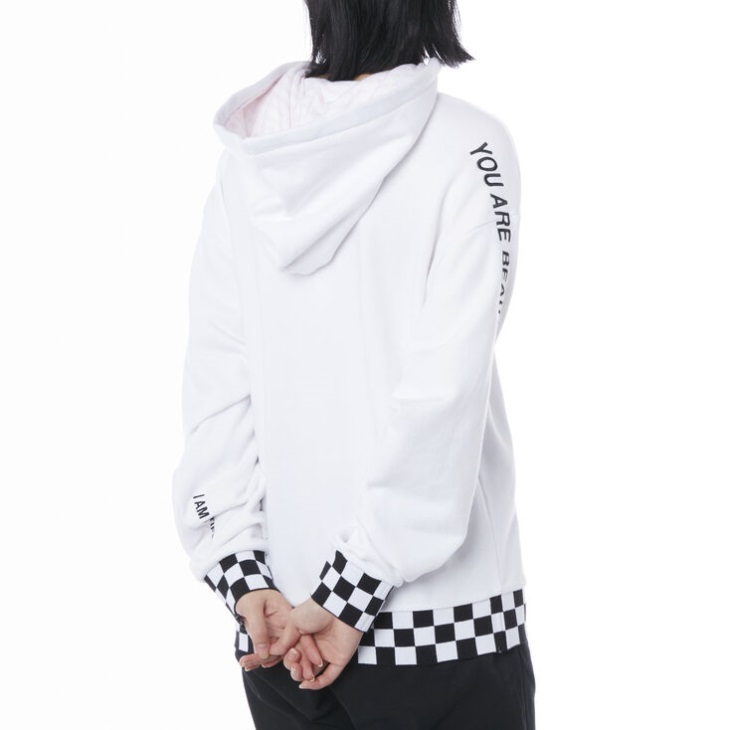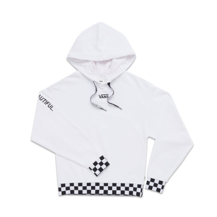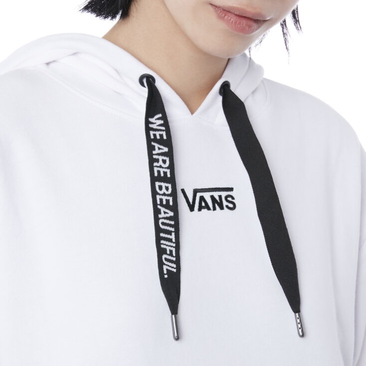WE ARE BEAUTIFUL. You are beautiful. I am beautiful. We are beautiful - inside and out. As part of this collection, the Vans x We Are Beautiful Fleece Pullover Hoodie encourages you to remind yourself and others of these positive affirmations in one of 15 different languages. It also features exaggerated sleeves, an oversized drawcord, multiple embroideries, and checkerboard ribbing at the sleeves and hem. Model is 5 feet 9 inches tall and wearing a size Small. - Vans x We Are Beautiful collection - 84% cotton, 16% polyester French terry - Exaggerated sleeves - Oversized drawcord - Multiple embroideries - Checkerboard ribbing - Cropped fit