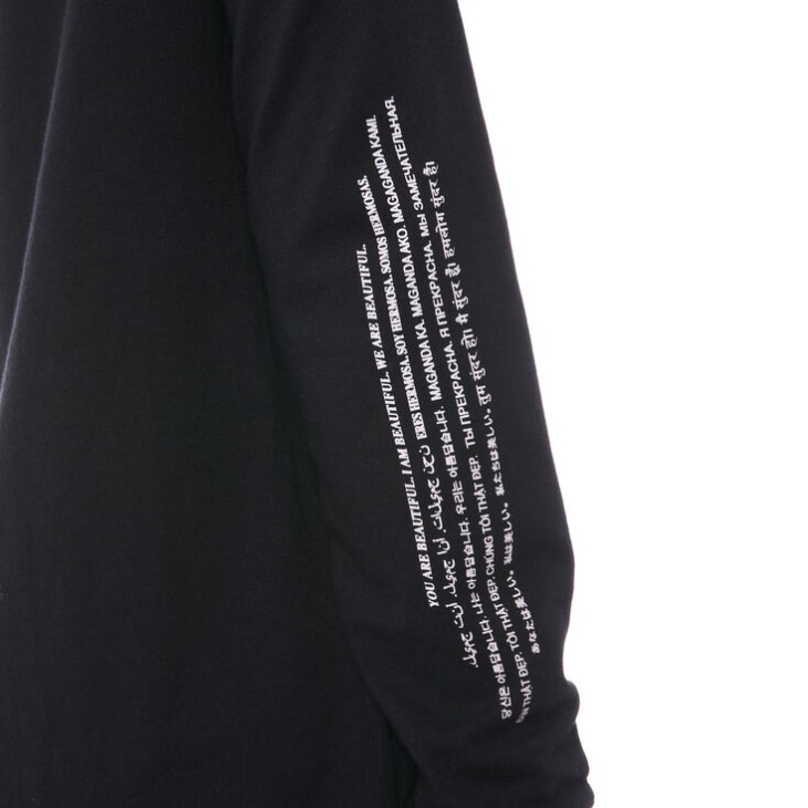 WE ARE BEAUTIFUL. You are beautiful. I am beautiful. We are beautiful - inside and out. As part of this collection, the Vans x We Are Beautiful Long Sleeve T-Shirt encourages you to remind yourself and others of these positive affirmations in one of 15 different languages. Model is 5 feet 9 inches tall and wearing a size Small. - Vans x We Are Beautiful collection - 100% heavy cotton jersey - Screen prints at front and sleeves - Boyfriend fit