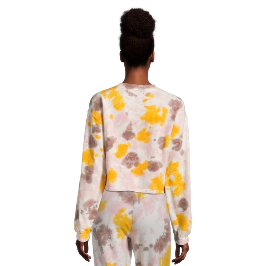 The Grunge Wash Crop Long Sleeve Crew is made with 60% cotton and 40% polyester.