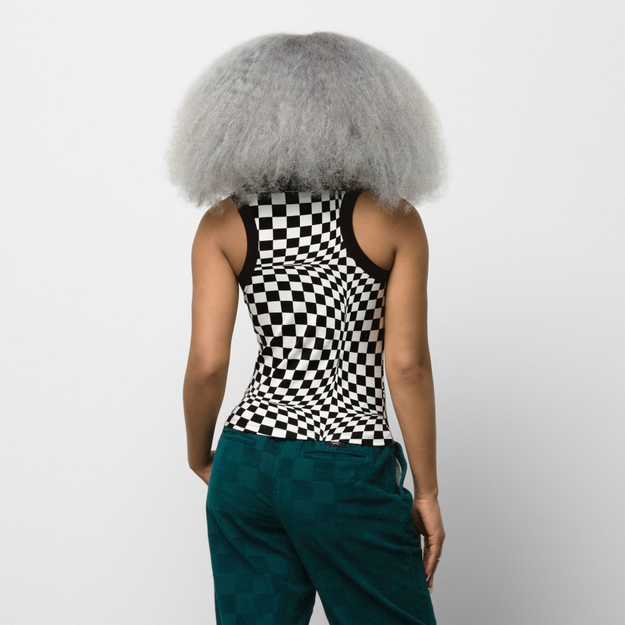 The Vans Worldwide Tank tweaks our iconic checkerboard print with an allover warped check pattern. Made with 96% cotton and 4% elastane, this fitted scuba tank top with a racer back design also features contrasting logo embroidery at center front. Model is 5 feet 9 inches tall and wearing a size Small.