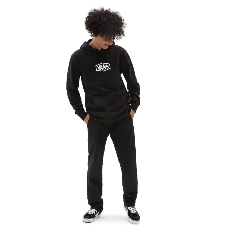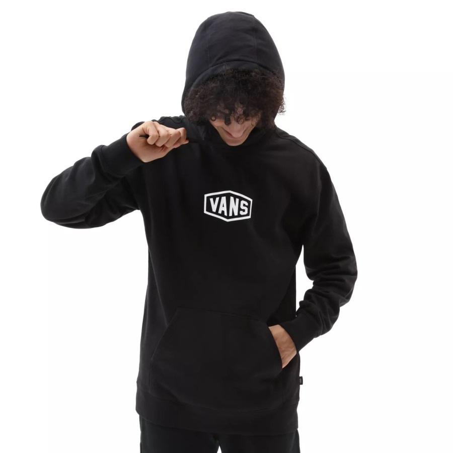The Checkerboard Research Pullover is a 60% cotton, 40% polyester fleece pullover hooded sweatshirt with a front pouch pocket, a logo screen print at center chest, and a back boxing bee screen print for a retro vibe.