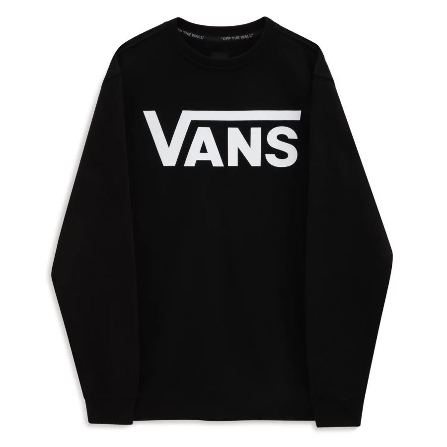 The Vans Classic Crew Sweatshirt is a 60% cotton, 40% polyester fleece pullover crewneck sweatshirt with signature front logo graphics. Model is 183 cm tall and wearing a size Medium.