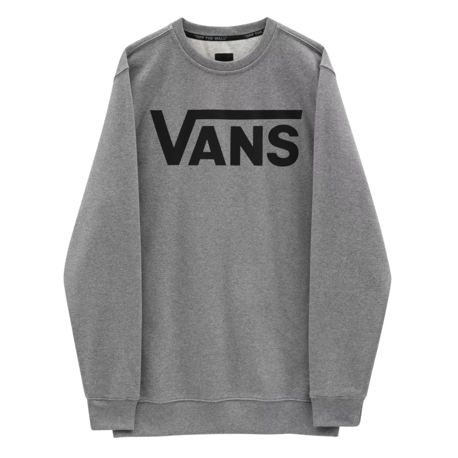 The Vans Classic Crew Sweatshirt is a 60% cotton, 40% polyester fleece pullover crewneck sweatshirt with signature front logo graphics. Model is 183 cm tall and wearing a size Medium.