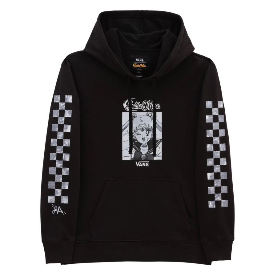 Lizzie Armanto embodies the true spirit of creative expression in all its forms. With a storied career that includes many firsts, Lizzie is a pioneer and role model. Continuing to break new ground, Vans and Lizzie are proud to deliver something else entirely for a new generation of skateboarders-and this season, that includes a special collaboration with Pretty Guardian Sailor Moon.The Vans X Pretty Guardian Sailor Moon Lizzie BFF Hoodie celebrates love and justice for all. This pullover hooded sweatshirt brings the fun of the iconic anime to your everyday wardrobe. Details include center front Sailor Moon graphics and a checkerboard print at each sleeve.