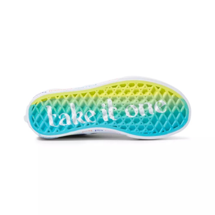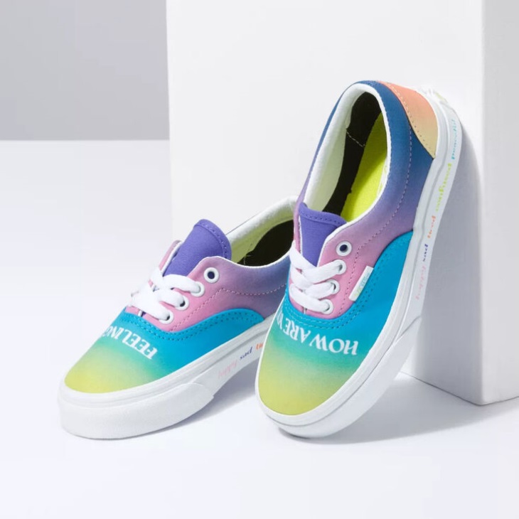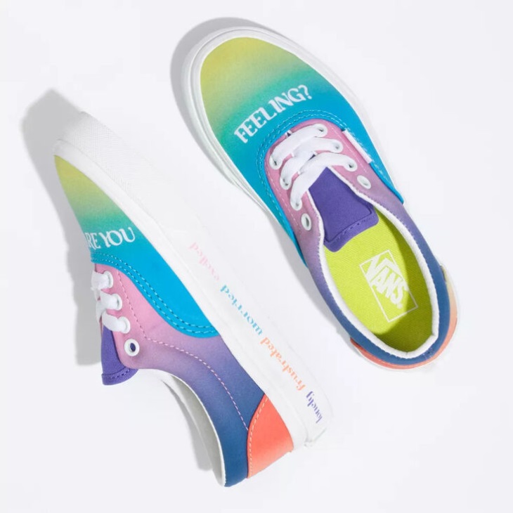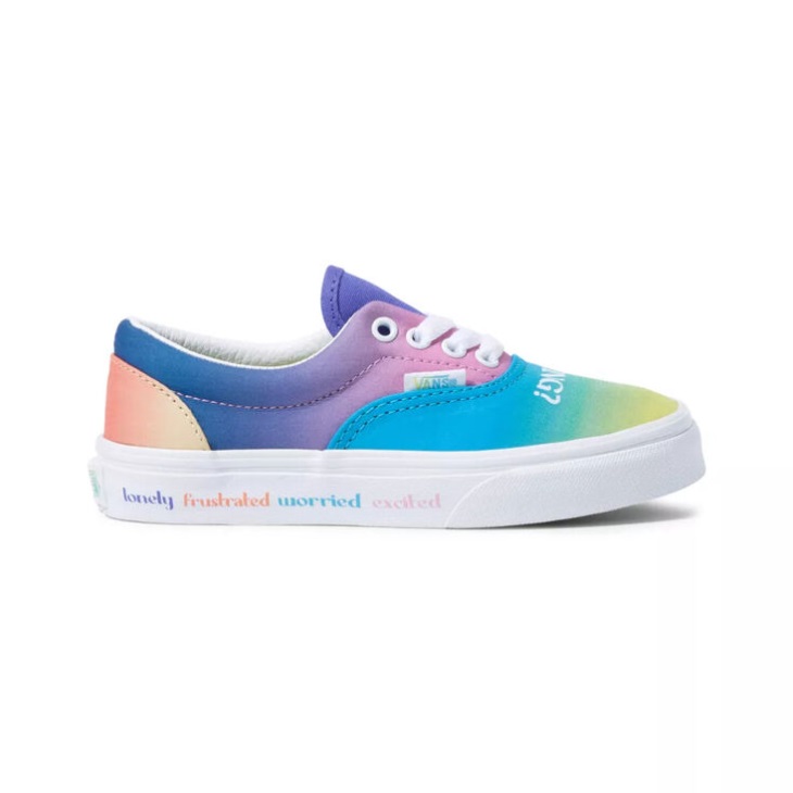 Mental health and wellness is a topic that affects many and is not always discussed. It can be a daily struggle for some to manage, especially during turbulent, stressful times. The Cultivate Care collection was designed with this in mind, drawing focus to powerful and uplifting images and phrases with the constant reminder to be kind to yourself and others. Featuring colorful textile uppers and printed sidewalls with subtle messages of strength and self love, the Cultivate Care Kids Era reminds you to take it one step at a time. This classic lace-up shoe also includes supportive padded collars, metal eyelets, and signature rubber waffle outsoles. In connection with this collection, Vans will donate at least $75,000 to support mental wellness efforts focused on youth. Cultivate Care collection Sturdy textile uppers with rainbow gradients Supportive padded collars Metal eyelets Printed sidewalls Colorful rubber waffle outsoles