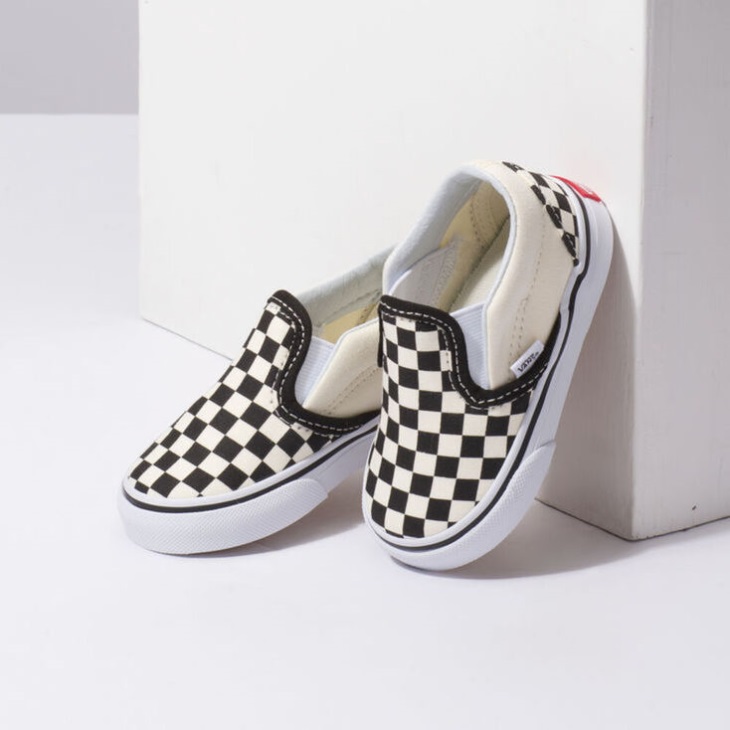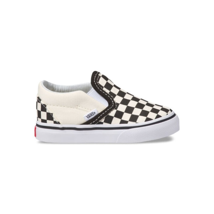Vans The Classic Slip-On has a low profile, slip-on canvas upper with all-over checker print, elastic side accents, Vans flag label and Vans original Waffle Outsole.