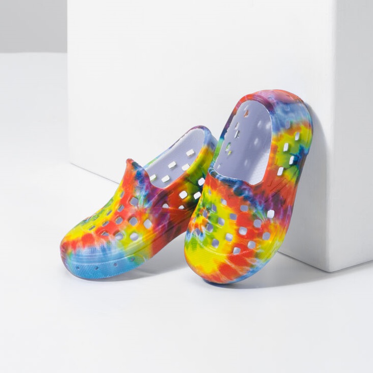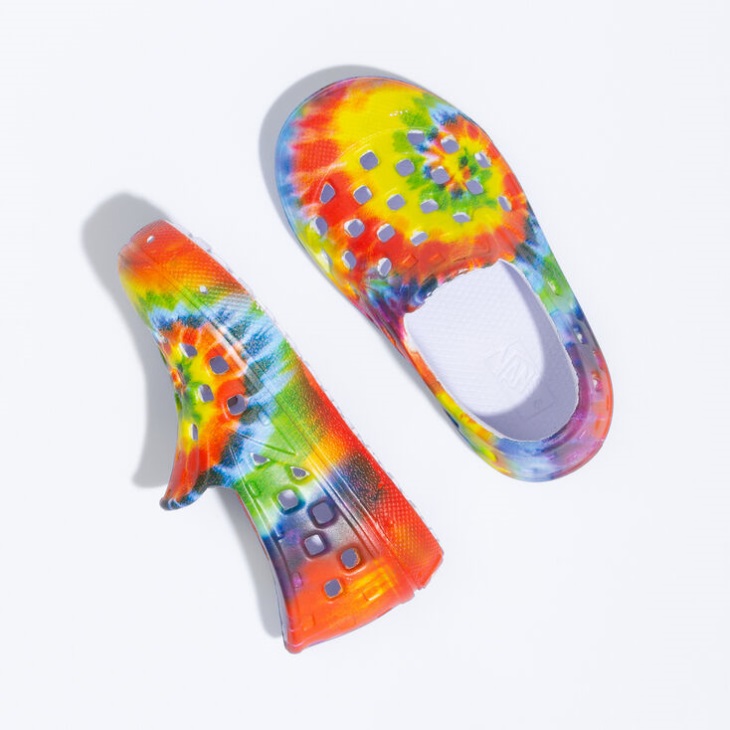 Taking the Classic Slip-On silhouette to a whole new level, the Tie Dye Slip-On TRK combines all the Vans DNA that you know and love with a durable, single piece injected construction, deconstructed checkerboard drainage holes for breathability, and an oversized reverse waffle sole for incredible traction in any situation. Designed to be lightweight and fully rinseable, the Tie Dye Slip-On TRK is easy to pack for your next adventure, so you can slip-on and on and on… - BIG-TIME TRACTION - Improved traction for any situation, thanks to the oversized reverse waffle sole. - BREATHABLE AND RINSABLE - Drainage holes mean that whatever goes in goes right back out. - A ONE-PIECE, SOLID, DURABLE DESIGN - A single-piece injected construction makes the Slip-On TRK collapsible and packable, as well as durable. - TIE DYE PRINT - The allover tie-dyed print enhances the "Off The Wall" look of this heritage-inspired shoe.