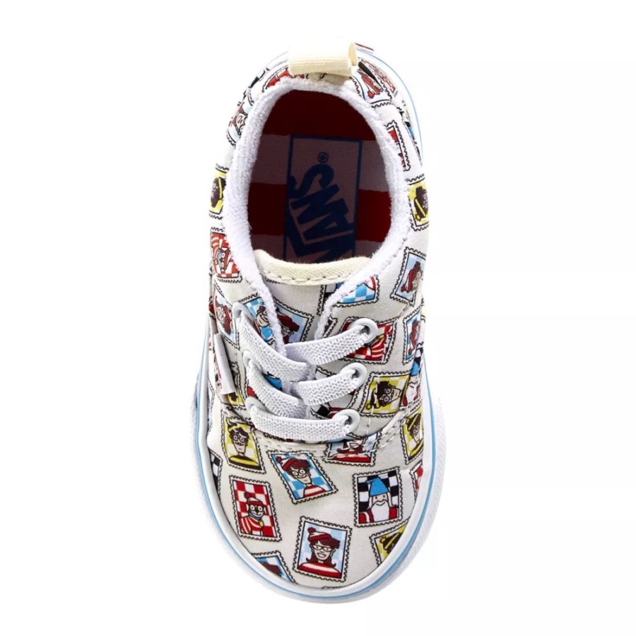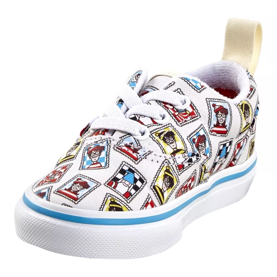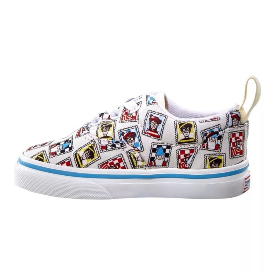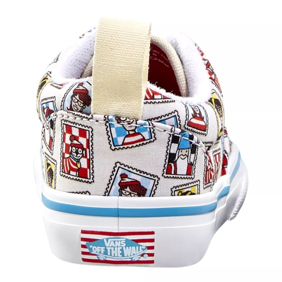 Where's Waldo? is an iconic collection of puzzle books created by English illustrator Martin Handford. Known for the challenge of finding Waldo hidden among detailed illustrations in his classic striped shirt, Where's Waldo? has become a beloved series for generations of kids and adults across the globe.This season, Vans and Where's Waldo? have teamed up for a fun new collection inspired by the beloved books. Featuring a checkerboard postage stamp print showcasing all the main characters throughout the series, the Vans x Where's Waldo? Toddler Era Elastic Lace pays playful homage to both brands' storied histories. This low-top shoe also includes sturdy canvas uppers with elastic laces and heel pull tabs, metal eyelets, padded collars, and signature rubber waffle outsoles.