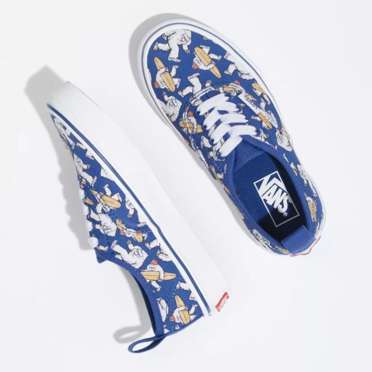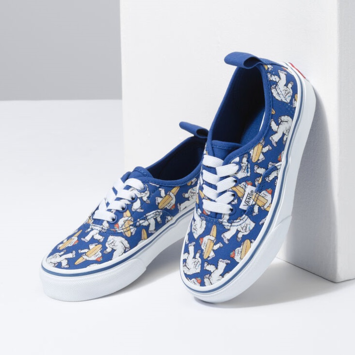 A clever twist on the original lace-up Authentic, the Yeti Surf Kids Authentic Elastic Lace is a classic low top shoe featuring elastic laces and pull tabs at the heels, allowing for an easy on-and-off fit. This timeless style also includes sturdy textile uppers, an allover surfing yeti print, and signature rubber waffle outsoles.