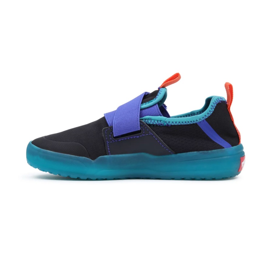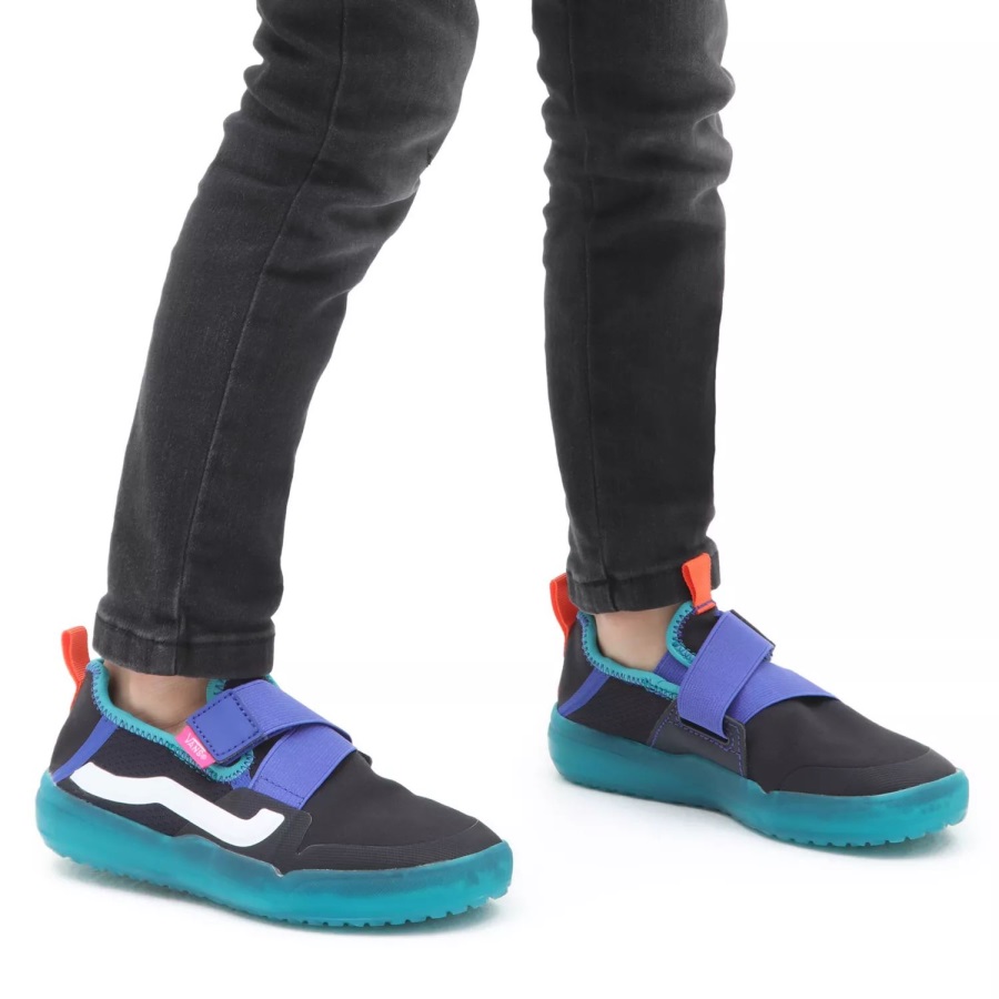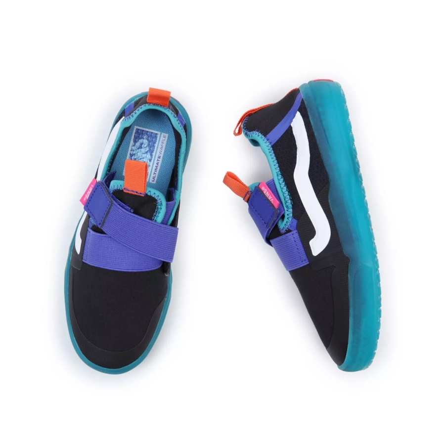 The Vans Kids Strker UltimateWaffle V Shoes are slip-ons with a soft, flexible fit for ease-of-entry and room to grow. They also have tongue-and-heel pulls and a gore strap with a hook-and-loop closure for accessibility. Breathable and stretch materials, and a collapsible heel allow for extra comfort. The UltimateWaffle sole adds cushioning, traction and durability.