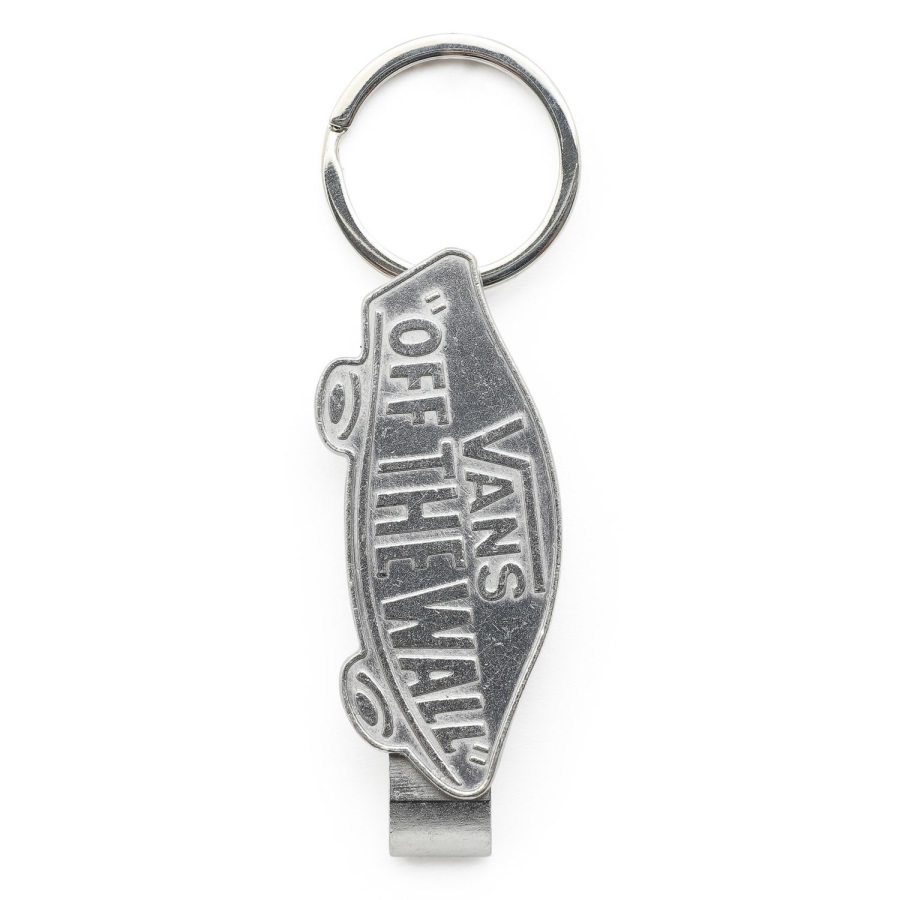 The Vans Bottle Opener is a 2.5cm key ring with a 6cm bottle opener. It features the Vans iconic skateboard logo.