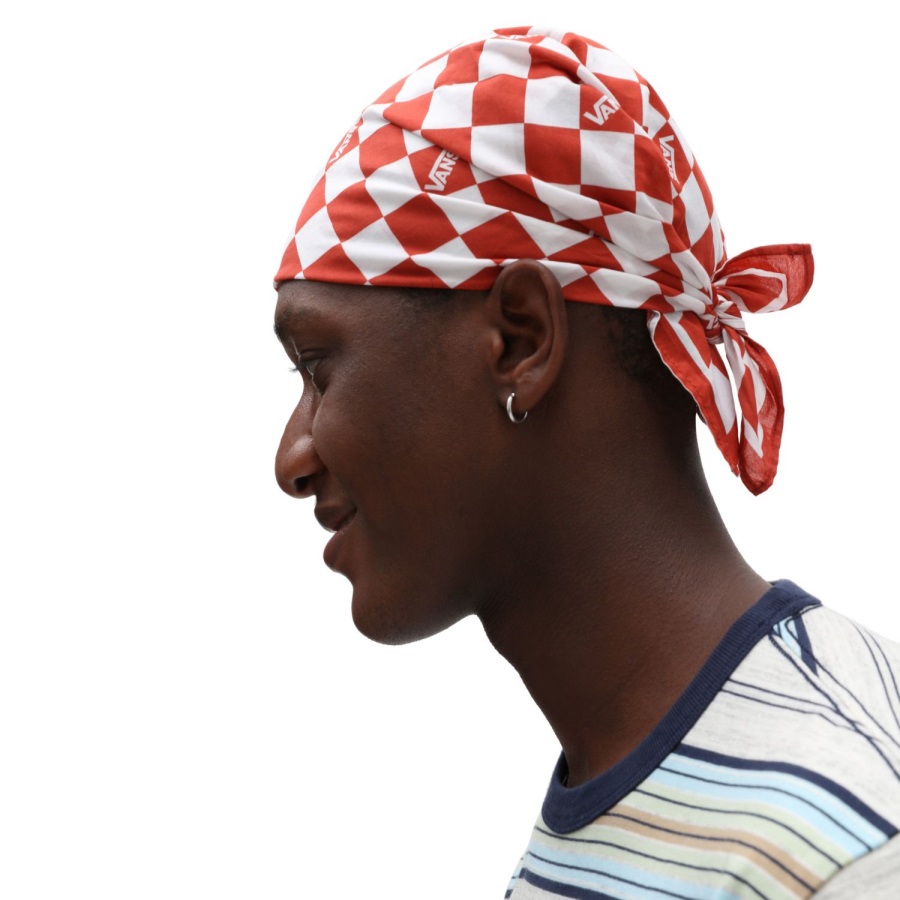 The Vans Mash Up Bandana has an allover checkerboard pattern and measures 50 w x 50 h cm. It also features the Vans logo.