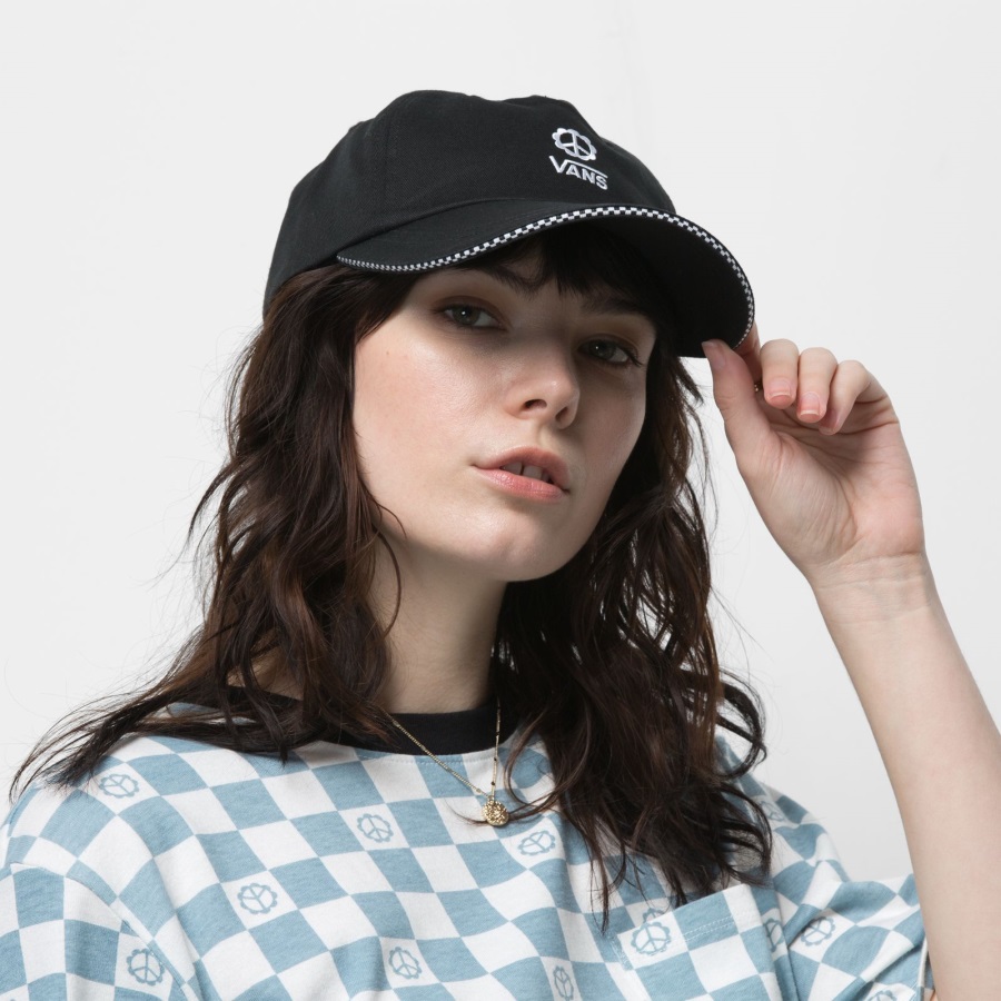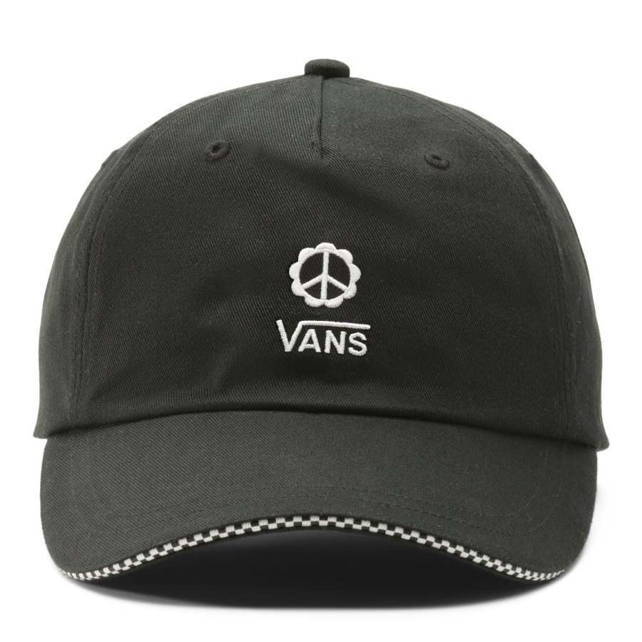 The High Standard Hat is made with cotton twill and features an elongated visor. For a subtle nod to our heritage, the visor features a checkerboard sandwich detail as an added pop of classic Vans cool, and the front highlights logo embroidery beneath a peace sign.