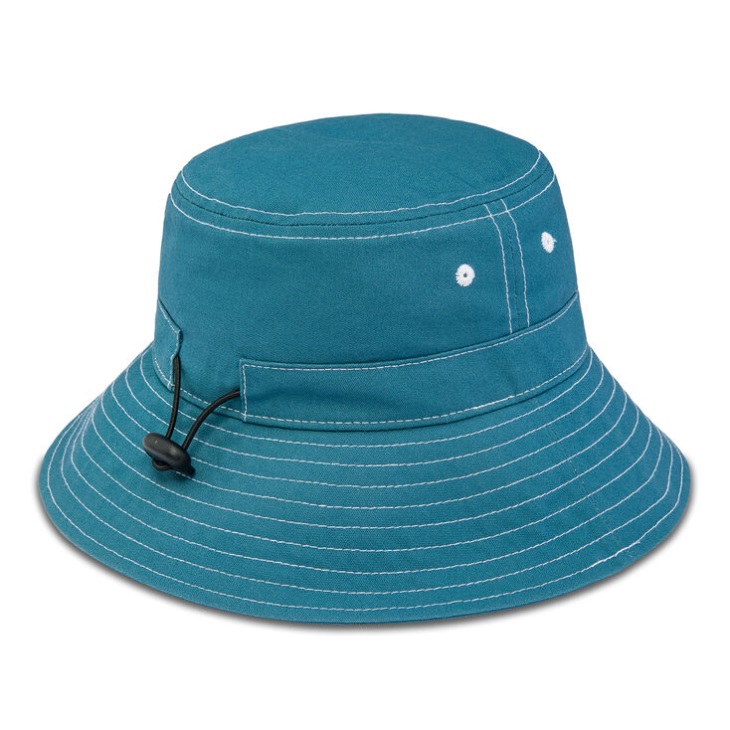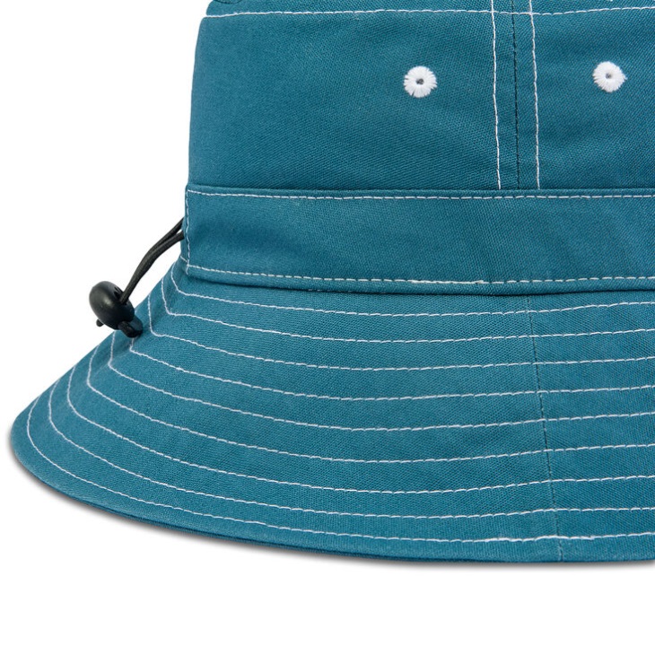 The Tighten Up Bucket Hat is a 100% Cotton hat with distinct lines and a central label design.