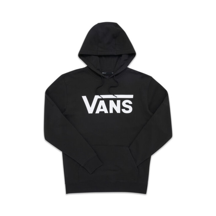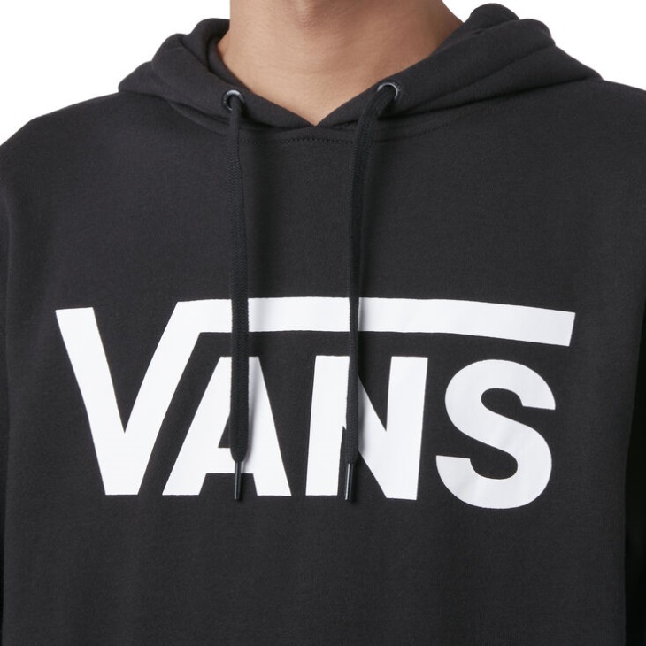 The Vans Classic Pullover Hoodie is a 60% cotton, 40% polyester fleece pullover hooded sweatshirt with a front pouch pocket and signature front logo graphics. Model is 6 feet tall and wearing a size Medium.
