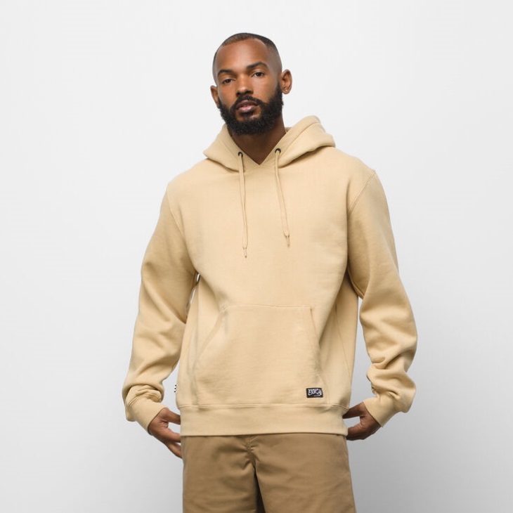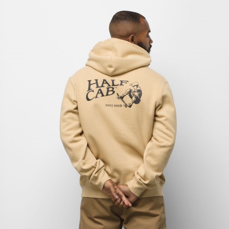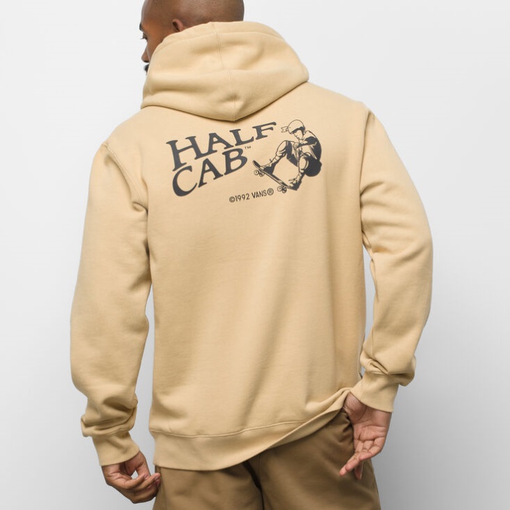 To celebrate 30 years of the iconic mid-top silhouette, the Half Cab 30th Pullover Hoodie features an old school Half Cab woven label at the front pocket, and large Half Cab graphics at the back. This hooded sweatshirt is made with 70% cotton and 30% polyester fleece. Model is 6 feet tall and wearing a size Medium.