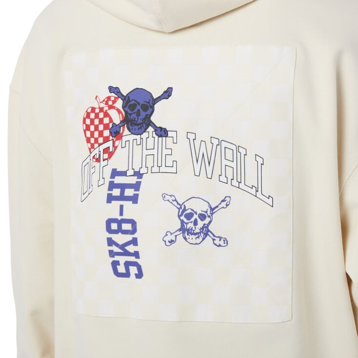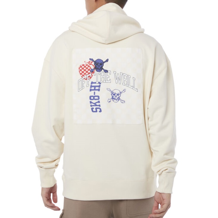 The New Varsity Pullover Hoodie is a 70% cotton 30% polyester hoodie sweater with a checquered Off The Wall skull design at the back and a large kangaroo front pocket.