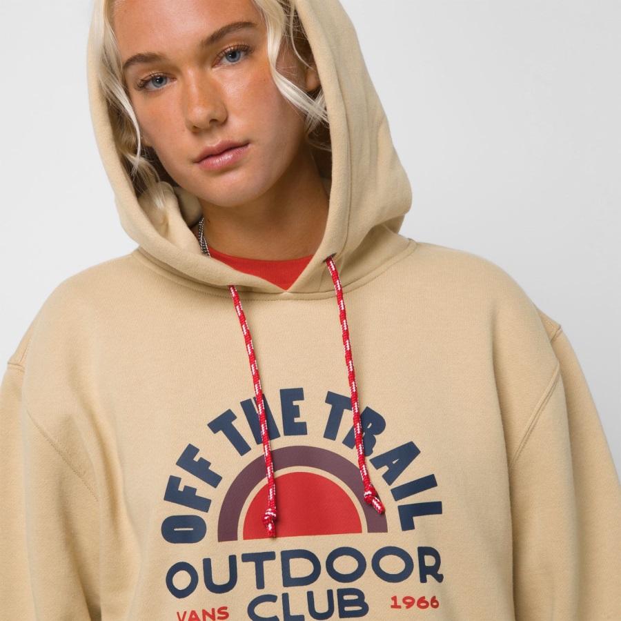 Vintage-inspired front graphics call back to a simpler time in the Vans Outdoor Club Pullover, a laid-back hooded sweatshirt made with 60% cotton and 40% polyester. A classic pouch pocket and retro color scheme enhance the old school look.
