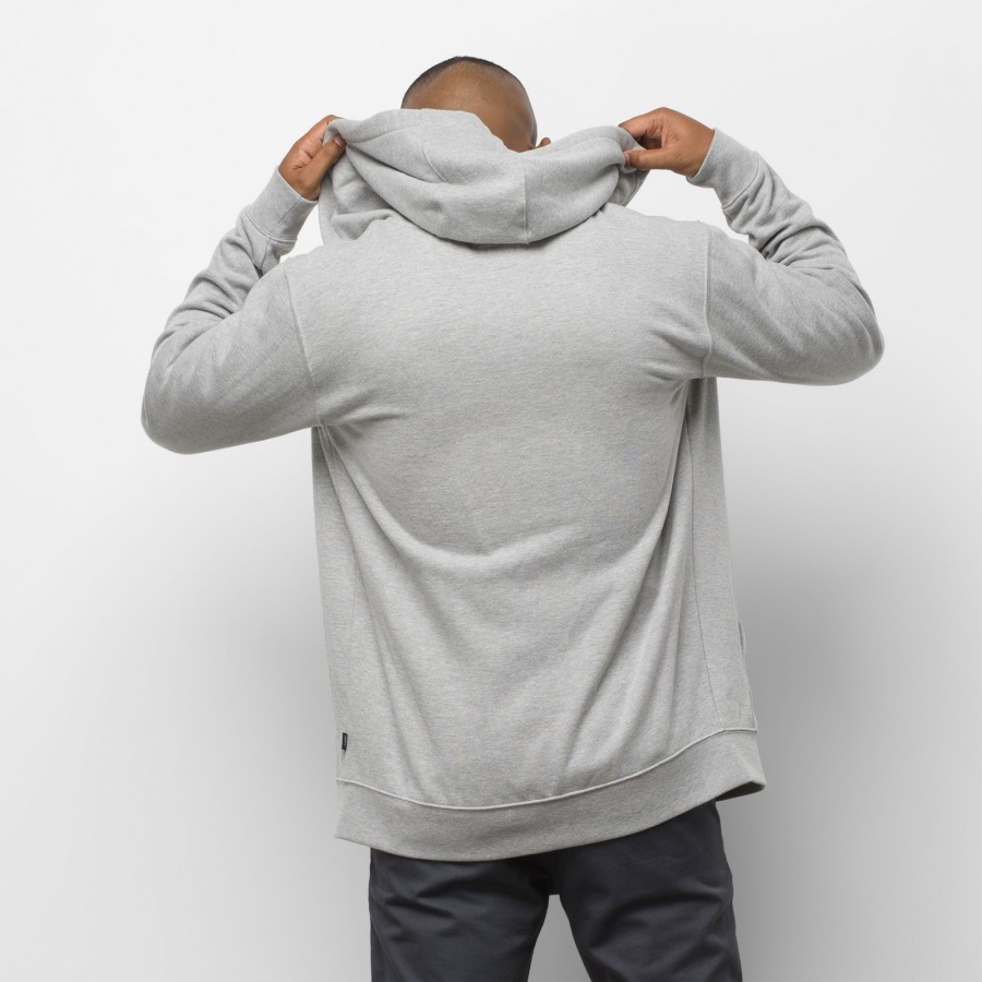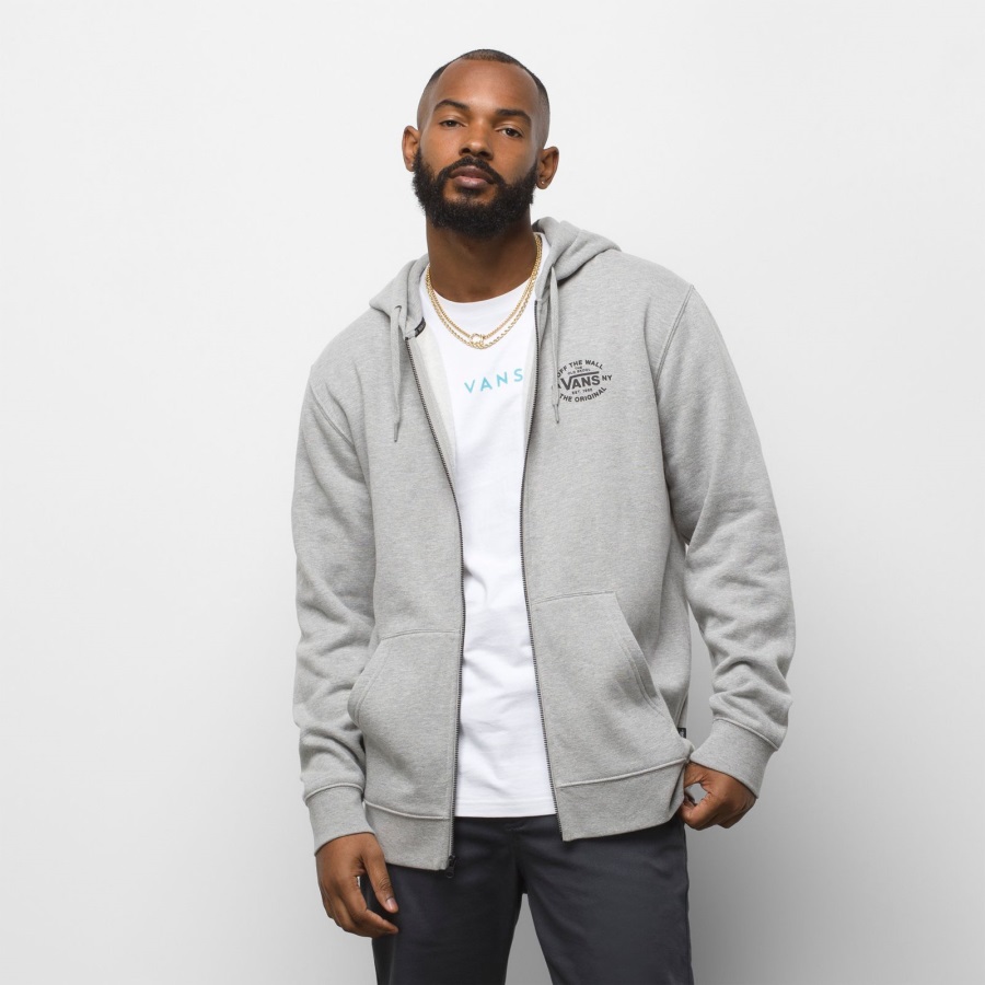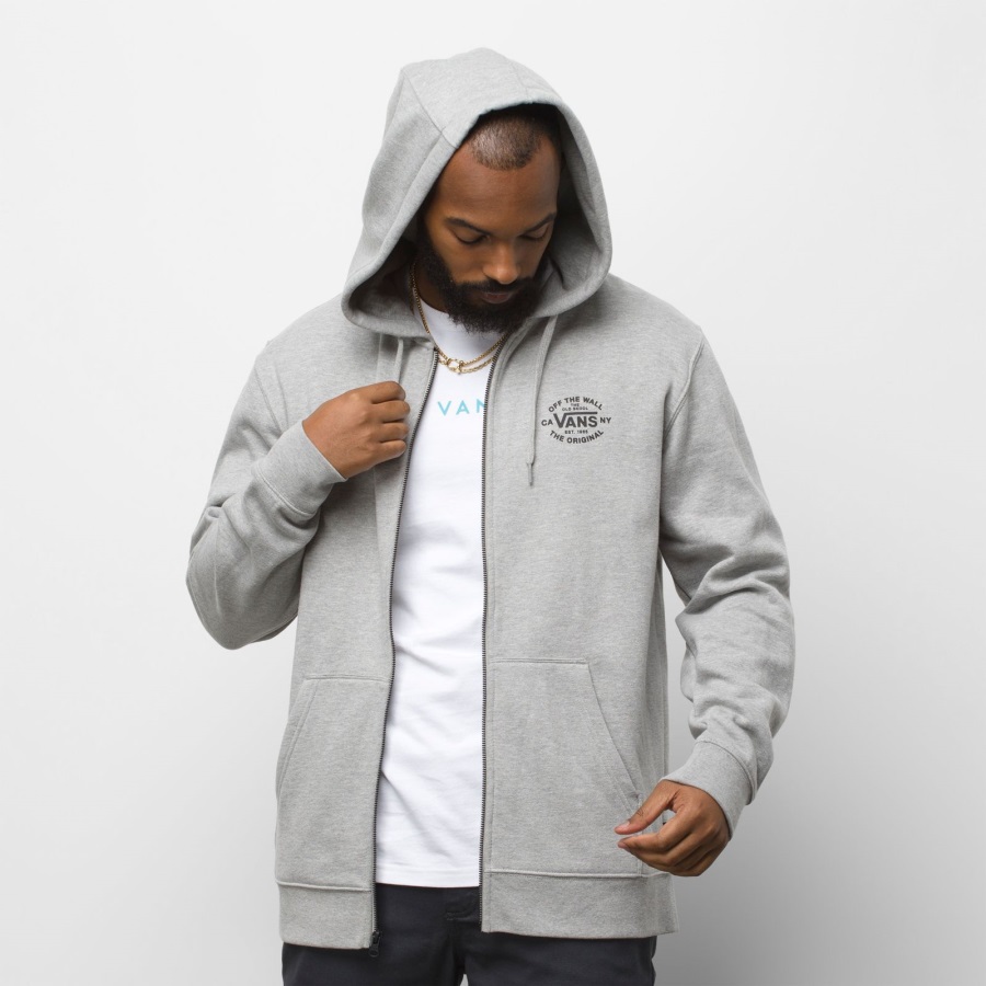 The Seasonal Full Zip Hoodie is a 60% cotton, 40% polyester fleece hooded sweatshirt with a full zip, front hand pockets, and a left chest logo screen print. Model is 6 feet tall and wearing a size Medium.