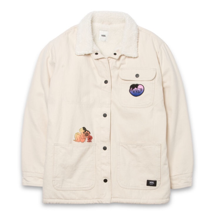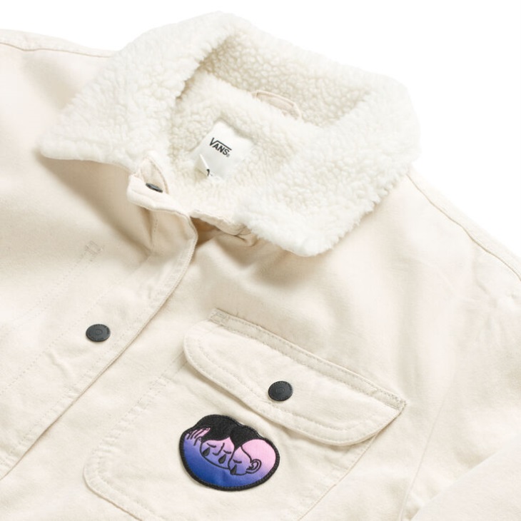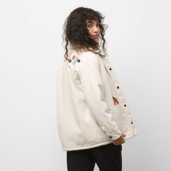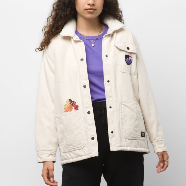 Mental health and wellness is a topic that affects many and is not always discussed. It can be a daily struggle for some to manage, especially during turbulent, stressful times. The Cultivate Care collection was designed with this in mind, drawing focus to powerful and uplifting images and phrases with the constant reminder to be kind to yourself and others. Featuring a mix of patches, screen prints, and embroidery graphics, the Cultivate Care Chore Coat reminds you to take it one step at a time. This cotton canvas coat also has cozy Sherpa lining, a Sherpa collar, a button front placket, and plenty of pockets for storage. Model is 5 feet 9 inches tall and wearing a size Small. In connection with this collection, Vans will donate at least $75,000 to support mental wellness efforts focused on youth. - Cultivate Care collection - 100% cotton canvas body, 100% polyester Sherpa lining and collar - Mix of patches, screen prints, and embroidery graphics - Classic chore coat styling - Button front placket - Patch pockets