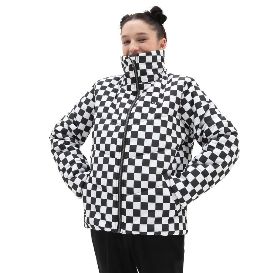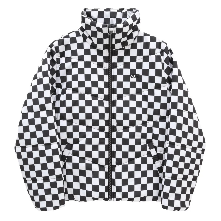 The Vans All-Weather MTE Collection features footwear and apparel designed to withstand the elements whilst still looking cool.The Vans Foundry Print Puff MTE Jacket is a fashion puffer with a high neck and side pockets. For extra warmth, it features durable water repellent (DWR) coating, 200 GMS DuPont™ body fill and 180 GMS sleeve fill. It has an allover checkerboard pattern and the Vans logo on the left chest.