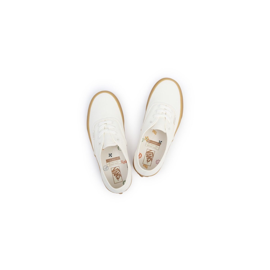 Being earth-conscious means more than just utilising responsibly sourced materials. It means taking a holistic approach to health and sustainability. These key values are the guiding principles in crafting this collection, with the goal being to make a more thoughtful product from the ground up. With features like a 100% certified organically grown cotton canvas upper, a responsibly sourced natural rubber outsole, jute laces, and water-based inks and glues, these shoes combine environmental consciousness with the Vans style you love.The Vans Authentic Shoes are lace-up, low tops with classic stitching, flag branding, and a waffle thread sole for firmer grip.