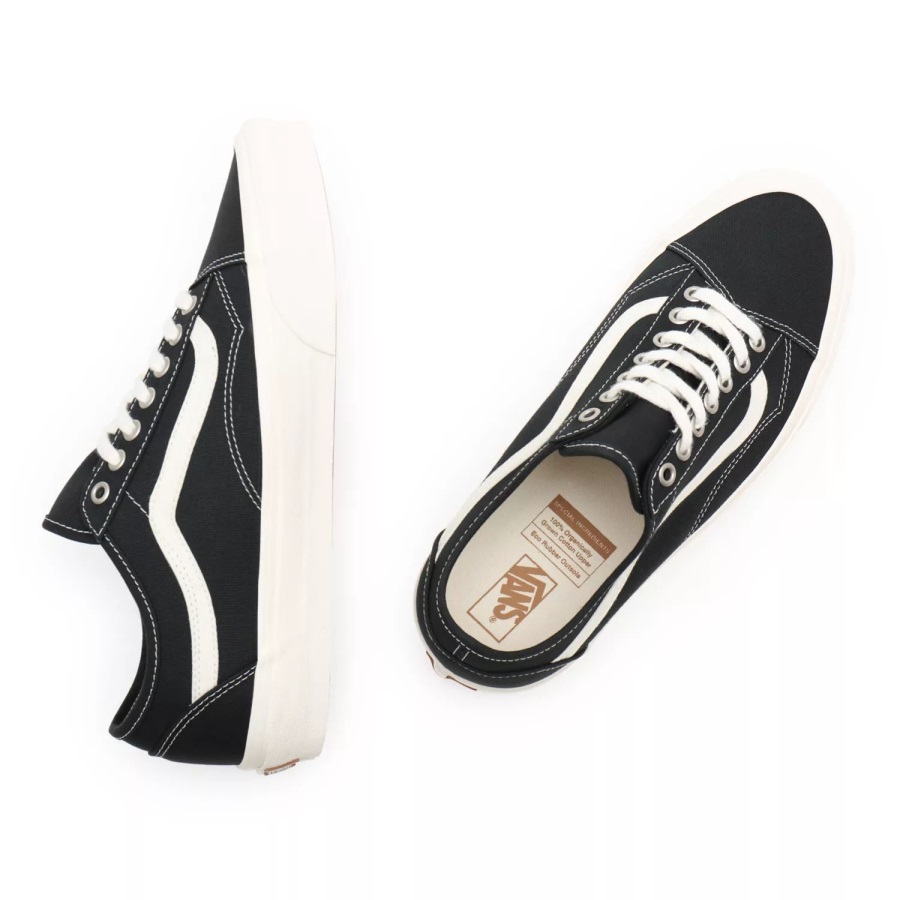 The Eco Theory Old Skool Tapered was designed with thoughtful attention toward sustainability in every part of the shoe. From organically grown cotton canvas uppers to the newly developed eco rubber outsole that has been engineered to remove 100% of petroleum-based rubber and replace it with natural rubber, all while maintaining the grip and durability that Vans has been known for since 1966, the Eco Theory Old Skool Tapered remakes our original sidestripe style with environmentally-friendly materials and techniques that you can feel good about. This deconstructed lace-up shoe also offers a more slender and fitted silhouette than the traditional Old Skool. It is finished with metal eyelets and renewable hemp laces.