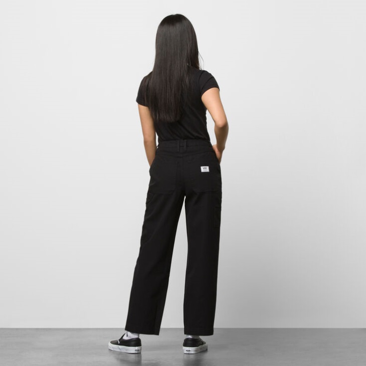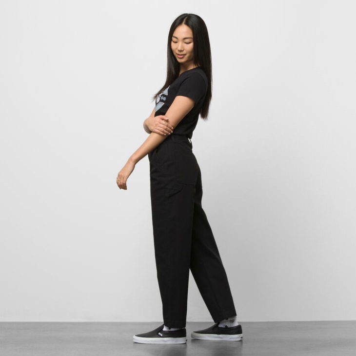 Classic workwear styling gets an upgrade in the Ground Work Pant. Made from cotton canvas, this straight leg pant combines traditional carpenter-style pockets and novelty stitch details with a comfortable, relaxed fit. Other standout details include the high-rise waist and Vans woven logo patch at the back pocket.